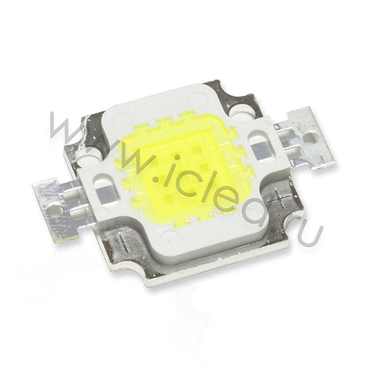 Светодиодная матрица COB. Цвет белый, температура свечения 6000K, мощность 10W, напряжение 9-11V, ток 300mA, световой поток 900Lm, угол 120 градусов. Размеры 29x20x3.35мм. Устанавливать на теплоотвод.
