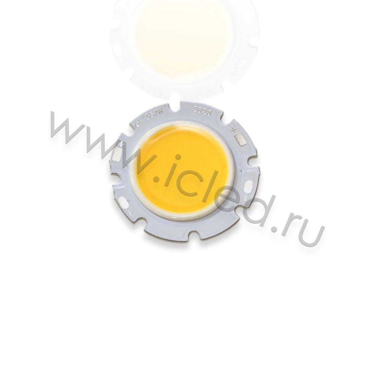 Светодиодная COB матрица. Цвет свечения белый 6000К. Алюминиевая подложка. Напряжение питания 15-17В, номинальный ток 300мА, потребляемая мощность 5Вт. Световой поток 500Лм. Диаметр 28мм, высота 1,9мм. Диаметр светящегося поля 19,5мм. Устанавливать на теплоотвод.