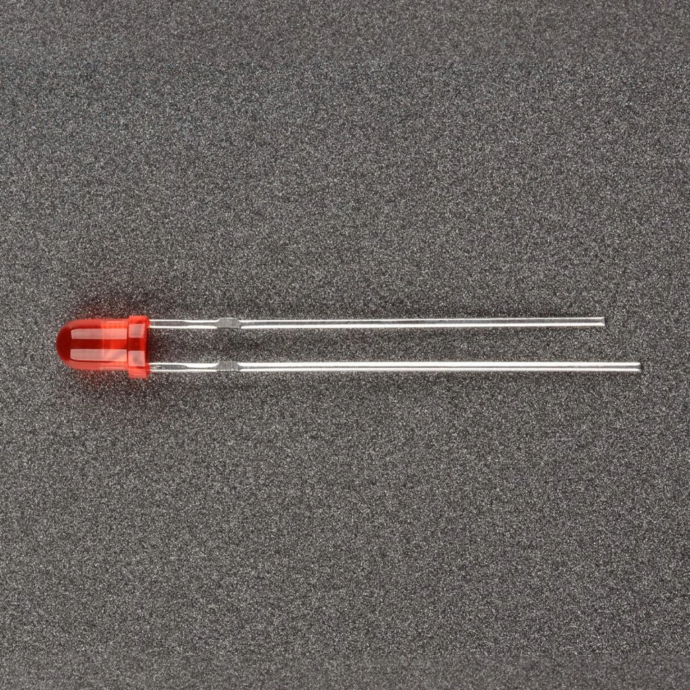 Поставка под заказ от 5000 шт. Выводной круглый светодиод, d=3 мм, диффузная красная линза. Цвет свечения красный (620-635 нм). Угол излучения 60°. Сила света Iv=100-150 мкд при If=20 мА. VF=1.9-2.3 В.