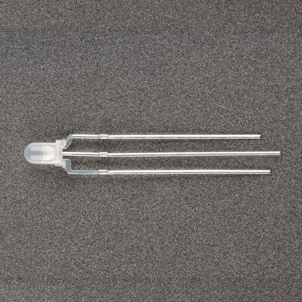 Поставка под заказ от 5000 шт. Выводной круглый светодиод, d=3 мм, матовая белая линза. Цвет свечения красный (625 нм), зеленый (565 нм). Угол излучения 30°. Сила света Iv=400-700 мкд (красный), Iv=100-250 мкд (зеленый) при If=20 мА. VF=2.0-2.5 В. Три вывода, общий катод.