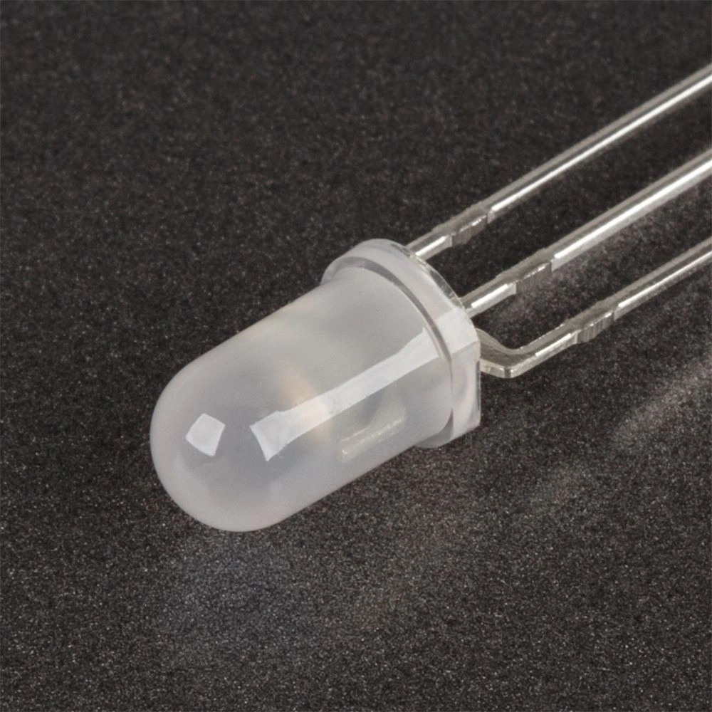Поставка под заказ от 5000 шт. Выводной круглый светодиод, d=5 мм, белая матовая линза. Цвет свечения красный (625 нм), зеленый (565 нм). Угол излучения 30°. Сила света Iv=100-200 мкд при If=20 мА. VF=1.8-2.4 В. Три вывода, общий катод.