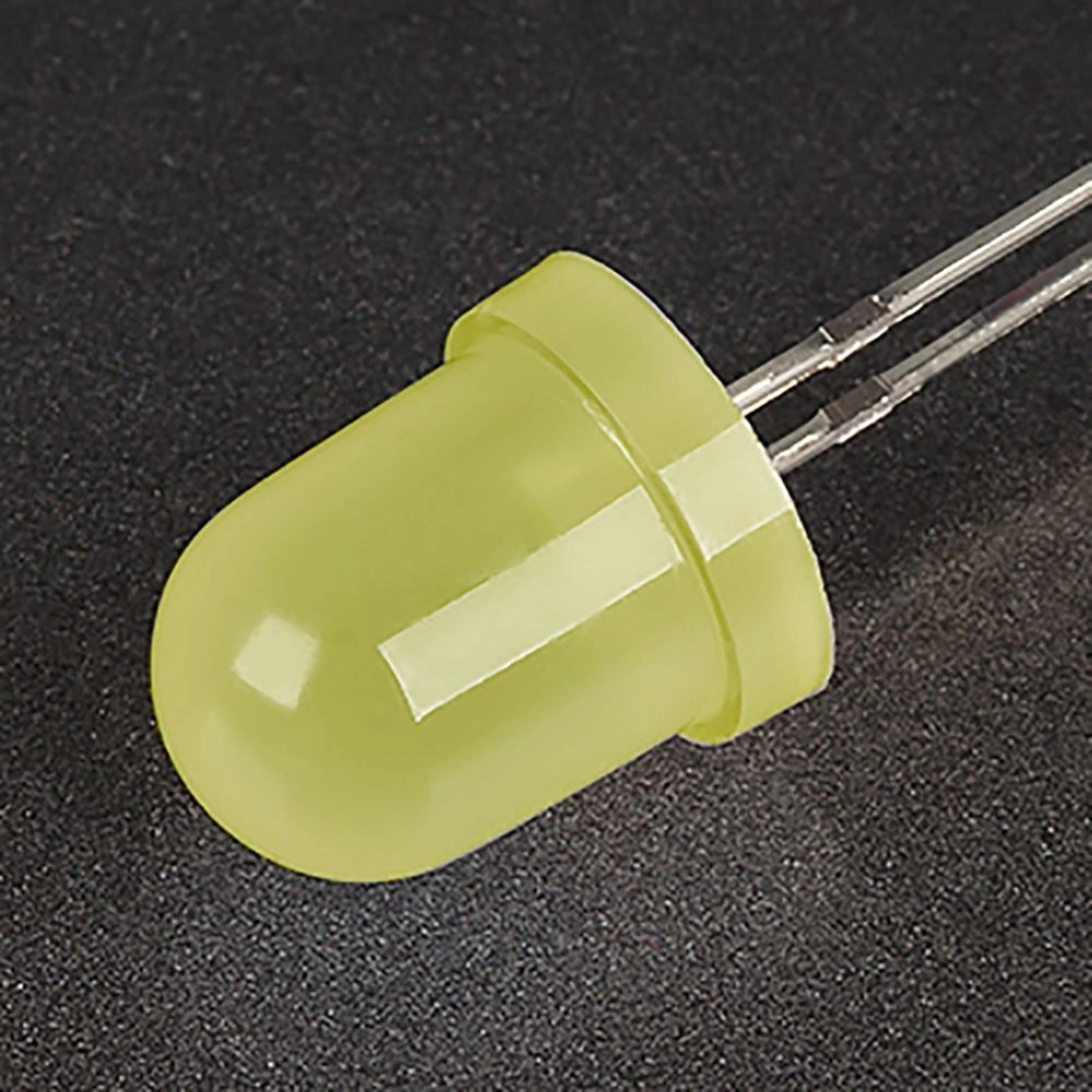 Поставка под заказ от 5000 шт. Выводной круглый светодиод, d=8 мм, диффузная желтая линза. Цвет свечения желтый (585-595 нм). Угол излучения 30-40°. Сила света Iv=200-450 мкд, If=20 мА. VF=1.8-2.4 В. Рекомендуемый постоянный рабочий ток <16-17 мА.