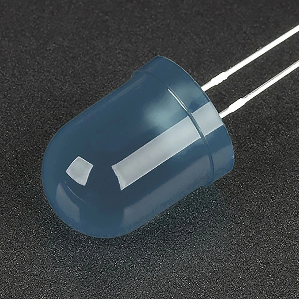 Поставка под заказ от 5000 шт. Выводной круглый светодиод, d=10 мм, диффузная синяя линза. Цвет свечения синий (470 нм). Угол излучения 60°. Сила света Iv=1500-2500 мкд, If=20 мА. VF=3-3.8 В. Рекомендуемый постоянный рабочий ток <16-17 мА.