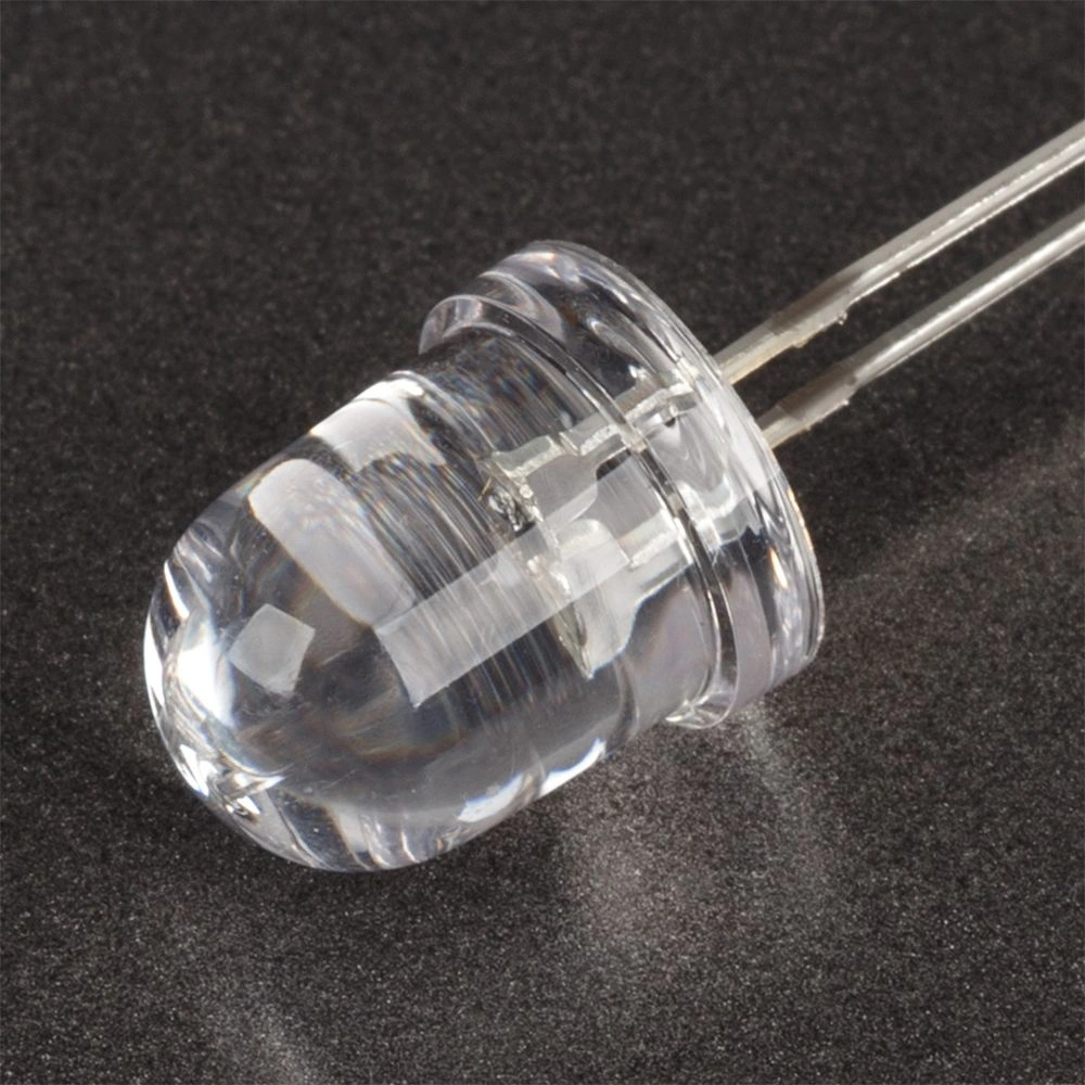 Выводные светодиоды различного диаметра (от 3 мм до 10 мм) и цвета свечения (в том числе двухцветные и RGB) изготовлены с применением различных материалов первичной оптики. Кристалл помещен в корпус со специальной линзой (прозрачной или окрашенной), которая формирует нужный световой пучок (узкий от 10 до 60° или широкий 120-140°). Данный тип светодиодов применяется в модулях индикации электронных приборов, устройств типа «бегущая строка» и «табло», в специальных устройствах (дорожные знаки и светофоры), световых украшениях или игрушках с подсветкой.