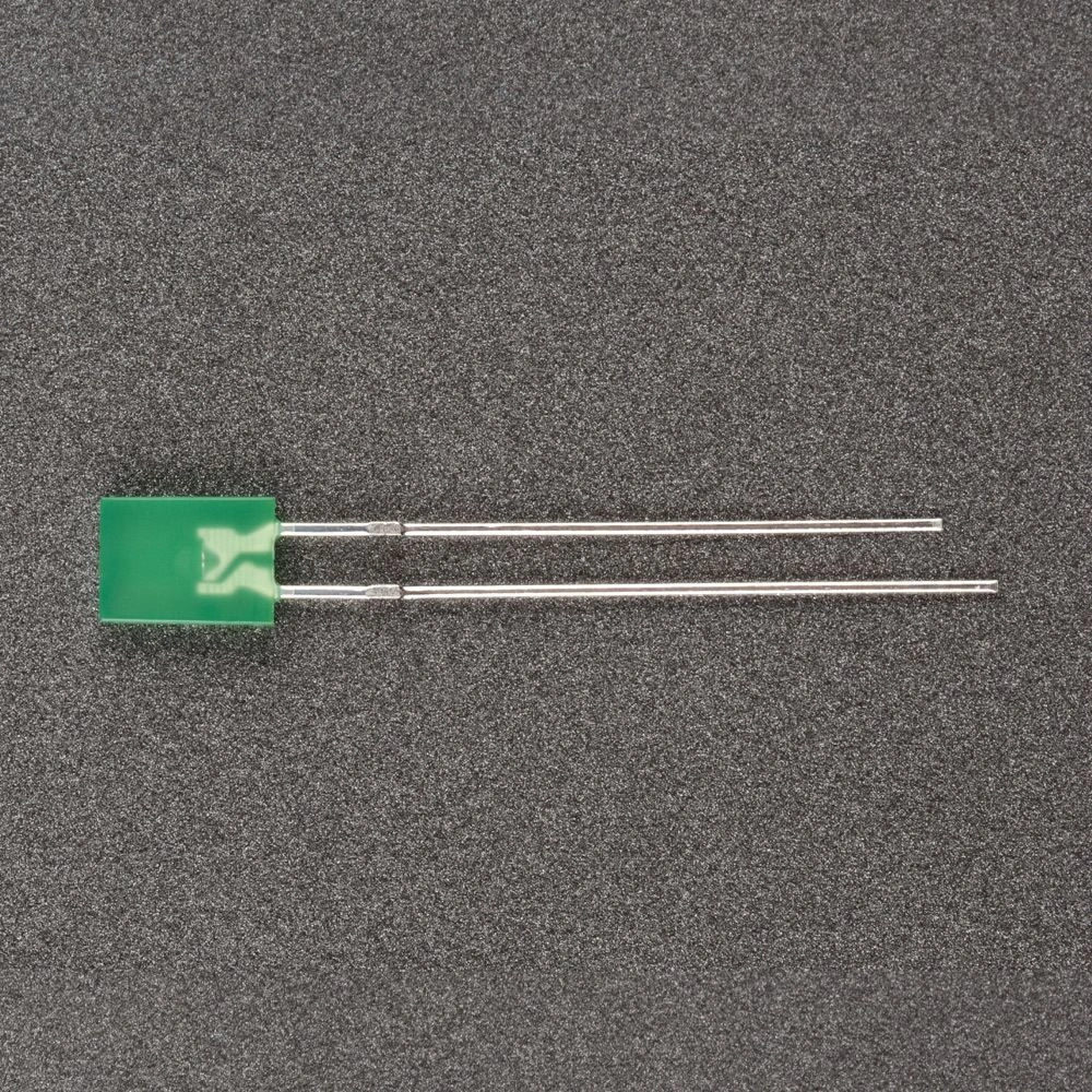 Поставка под заказ от 5000 шт. Выводной прямоугольный светодиод, 2×5×7 мм, зеленая диффузная линза. Цвет свечения зеленый (570 нм). Угол излучения 130°. Сила света Iv=50-100 мкд при If=20 мА. VF=1.8-2.4 В. Рекомендуемый постоянный рабочий ток <16-17 мА.