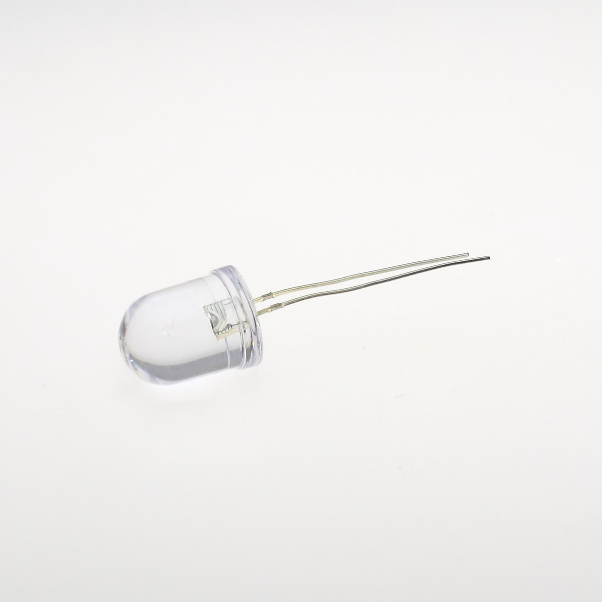 Светодиод выводной. Прозрачный корпус. Цвет свечения красный (625нм). Падение напряжения 1,9-2,3В, прямой потребляемый ток 20мА. Угол свечения 30 градусов. Яркость 4000-5000 мкд. Диаметр 10мм. Упаковка 500 шт.