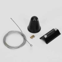 Подвес для однофазного трека. Корпус черный. Диаметр троса 1,4мм, длина 2000мм. Ширина крепежной скобы 30,7мм. Вес 55гр.