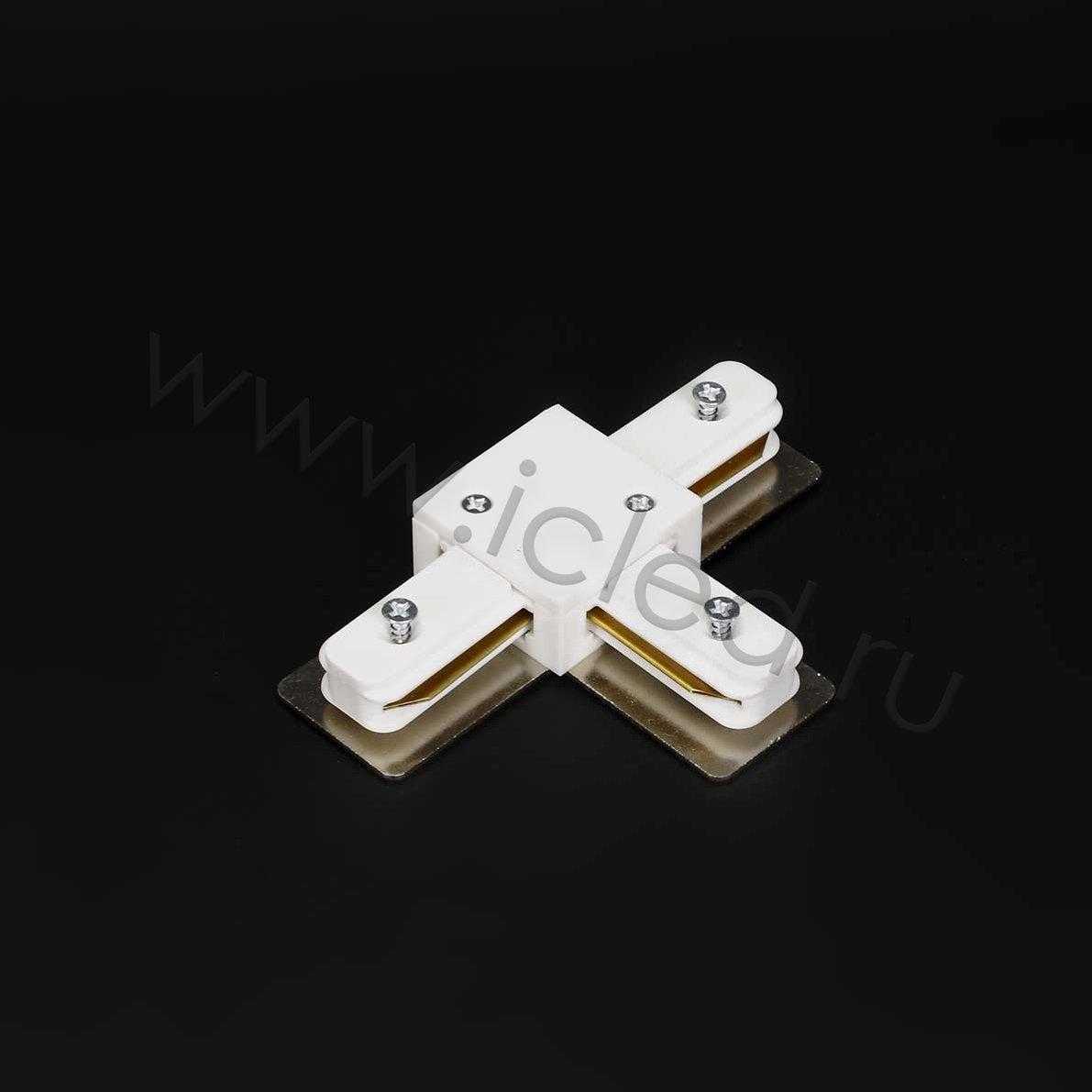 Соединитель Т-образный для двухпроводного трека. Цвет корпуса белый. Размеры 106х71х18мм. Вес 85гр.