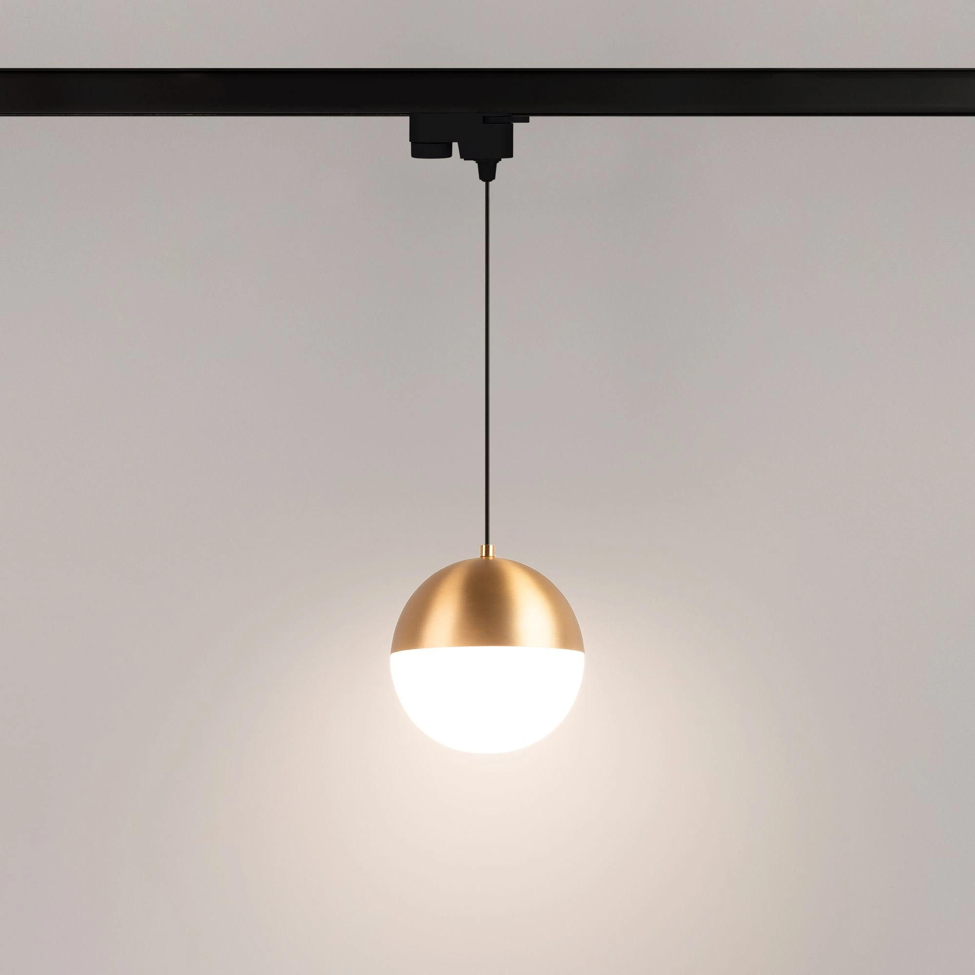 Элегантный подвесной светильник мощностью 11 Вт с дневным белым цветом свечения (4000 К). Для однофазных треков. Матовый плафон с широким углом излучения 170° создает приятное рассеянное свечение и особую теплую атмосферу в любых интерьерах. Золотой корпус на регулируемом подвесе длиной 1500 мм можно перемещать вдоль трека, меняя световые акценты. Диаметр светового модуля 150 мм. Высокий индекс цветопередачи (CRI>90) и световой поток 960 лм удовлетворяют требованиям проектов, так как обеспечивают отличную передачу цветов и качественное декоративное освещение в жилых, коммерческих, офисных и других помещениях. Минимальный коэффициент пульсации (менее 1%) гарантирует зрительный комфорт без мерцания. Встроенный драйвер позволяет быстро и безопасно подключить к сети 230 В.