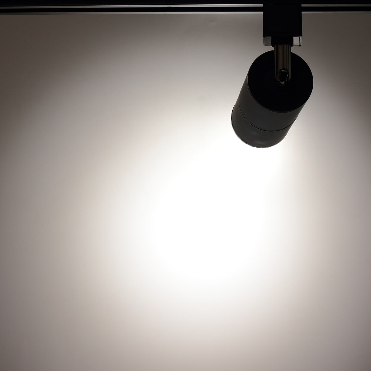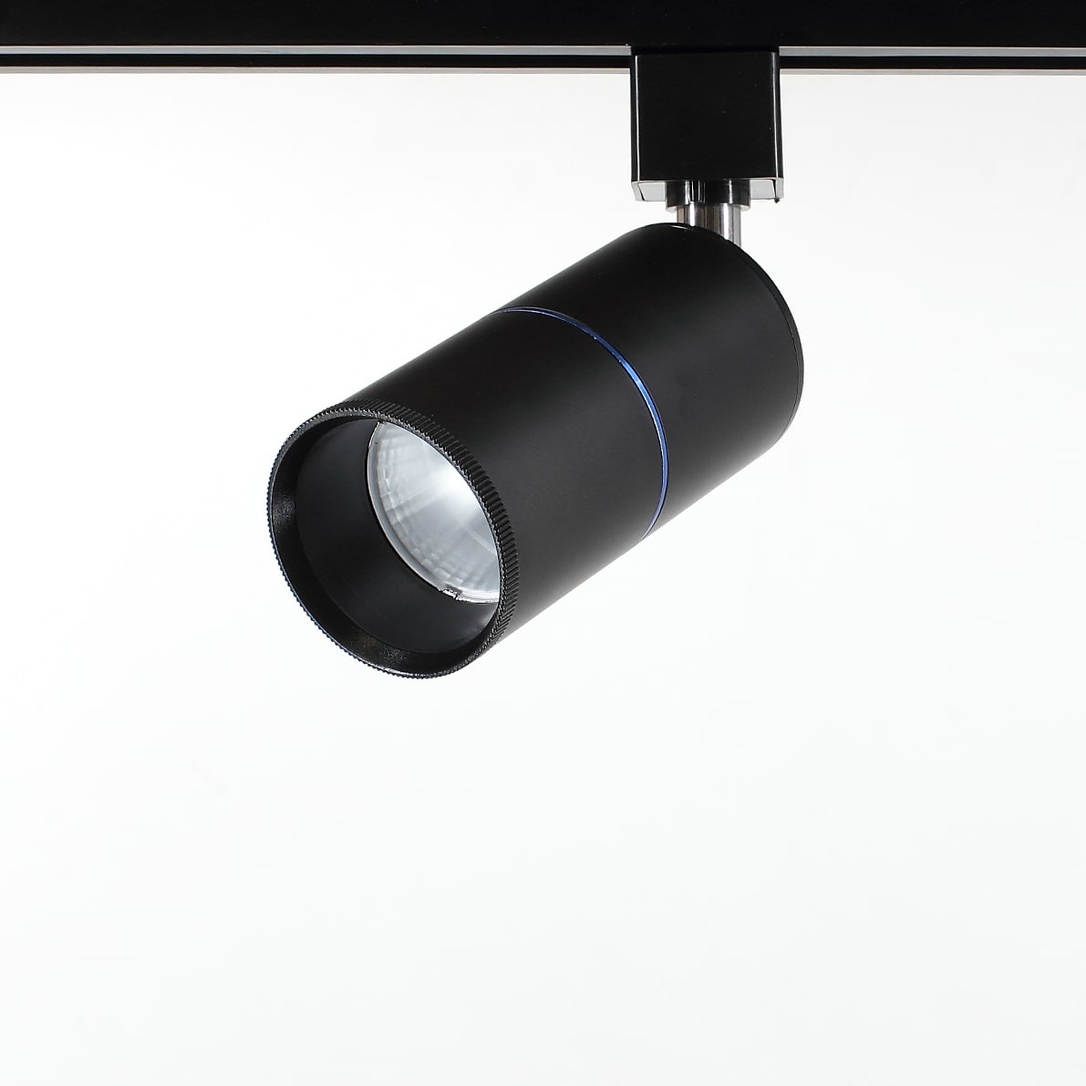Светодиодный трековый светильник. Черный корпус. Напряжение 85-265V, мощность 10W, цвет свечения дневной белый 4000-4500K, световой поток 700Lm. Угол свечения 24 градусов. Класс защиты IP40. Высота 120мм, диаметр 60мм. Размеры упаковки 65x65x210мм. Вес 280г