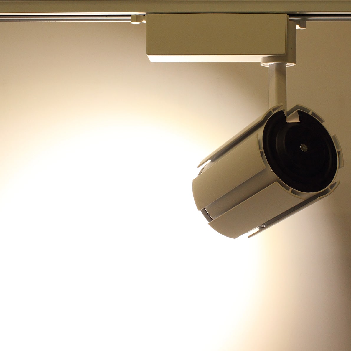 Светодиодный трековый светильник. Белый корпус. Напряжение 85-265V, мощность 20W, цвет свечения дневной белый 4000K, световой поток 2000Lm. Угол свечения 30 градусов. Класс защиты IP40. Размеры 150x88x200мм. Вес 550г.
