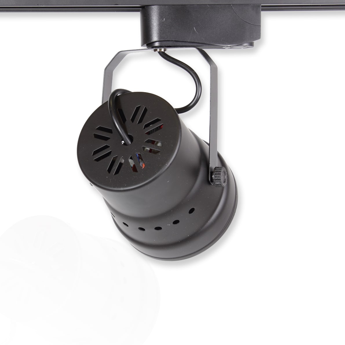 Трековый светильник. Черный корпус. Напряжение 110-240V, мощность 12W, цвет свечения теплый белый 2700-3000K, угол свечения 30 градусов, световой поток 1080-1200Lm. Класс защиты IP20. Размеры 145x125x230мм.