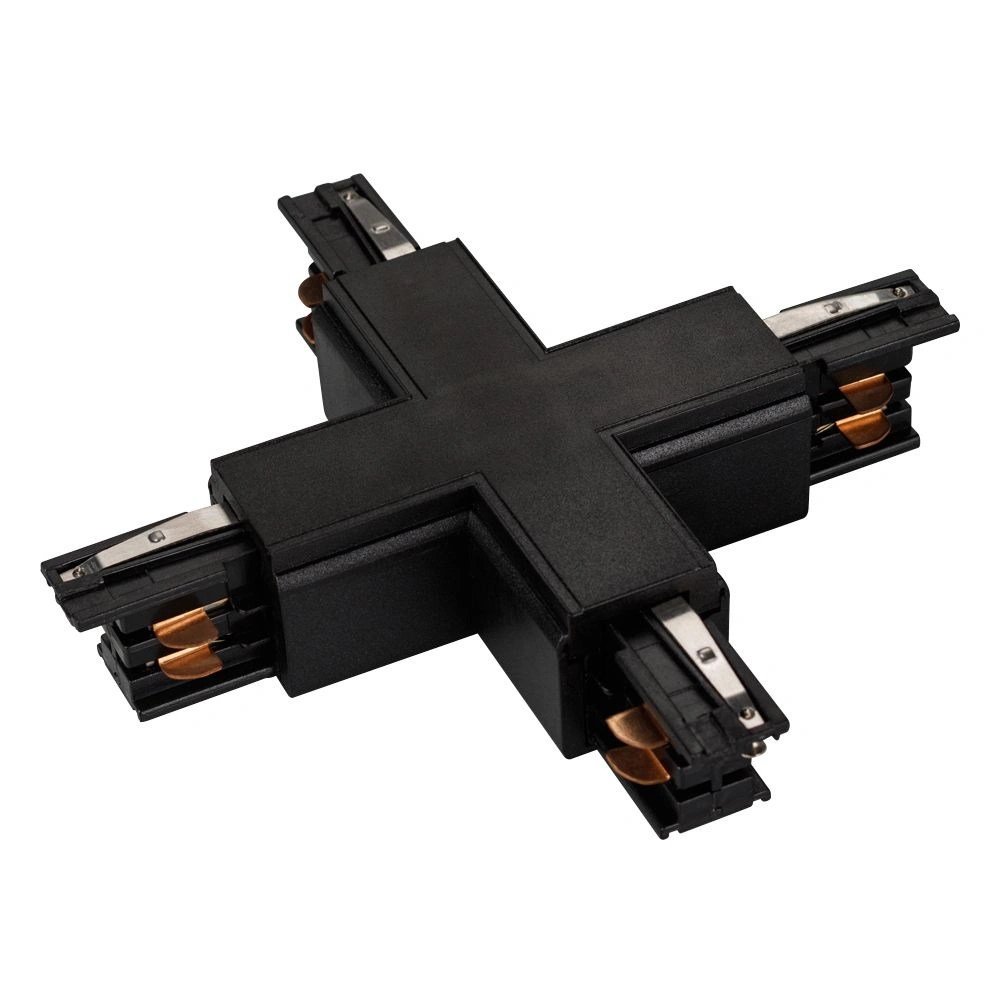 X-образный коннектор для треков 4TR. Цвет черный. 166х166х33 мм с контактами, 99х99х33 мм без контактов.