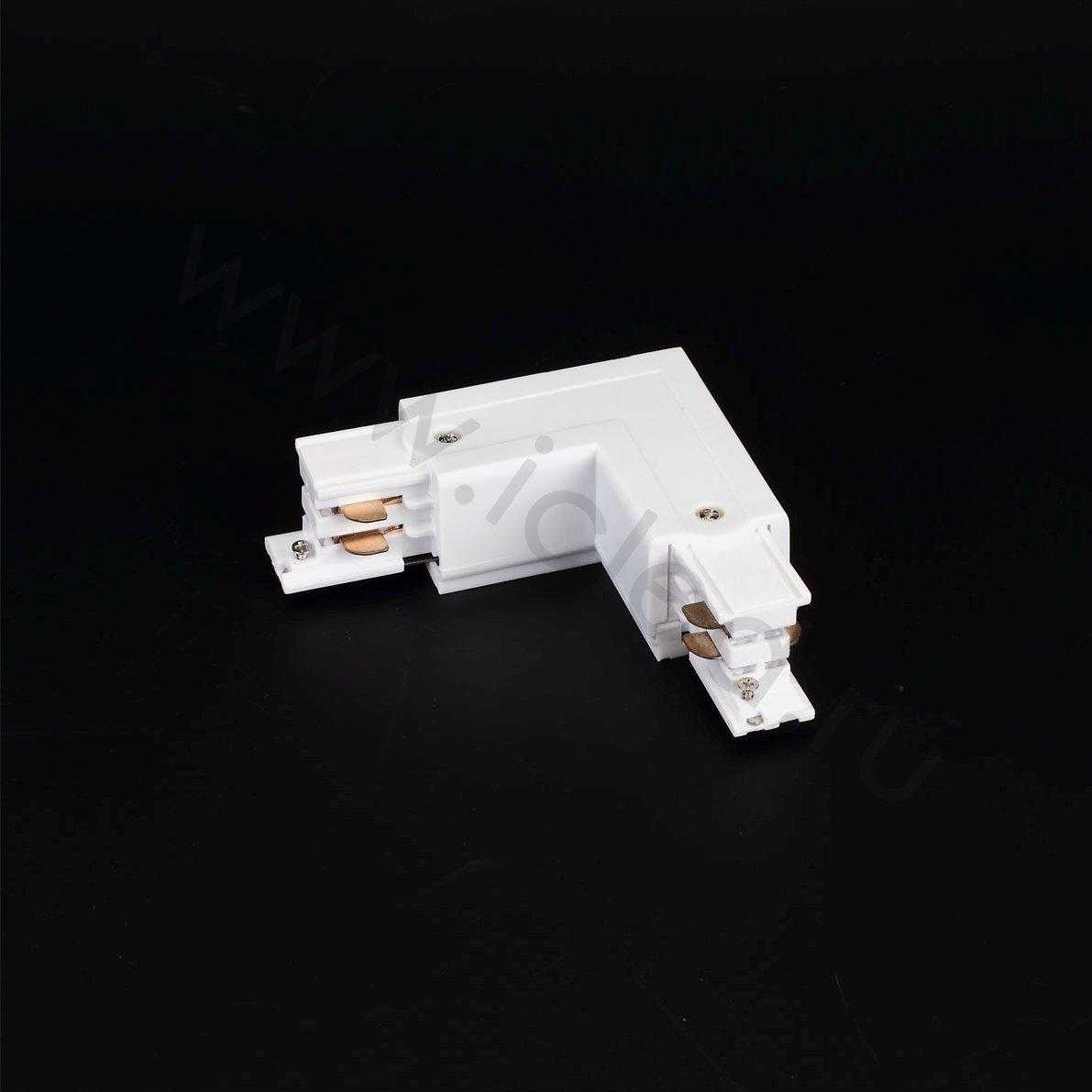 Соединитель угловой для четырехпроводного трека (заземление с внутренней стороны угла). Цвет корпуса белый. Размеры 100х100х33мм. Вес 95г.