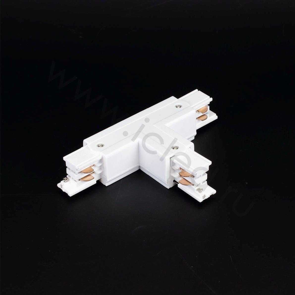 Соединитель Т-образный для четырехпроводного трека. Цвет корпуса белый. Размеры 165х100х33мм. Вес 140г.