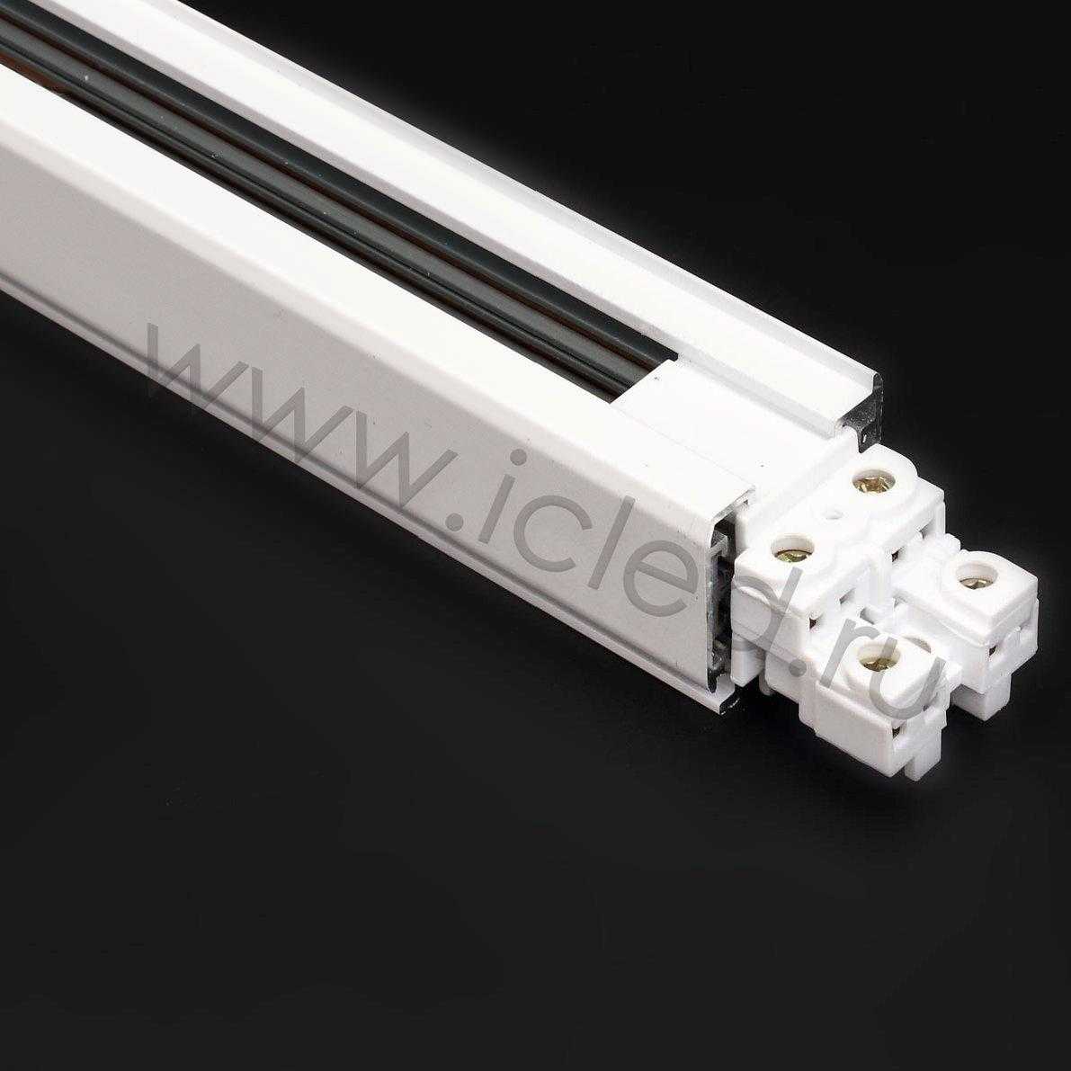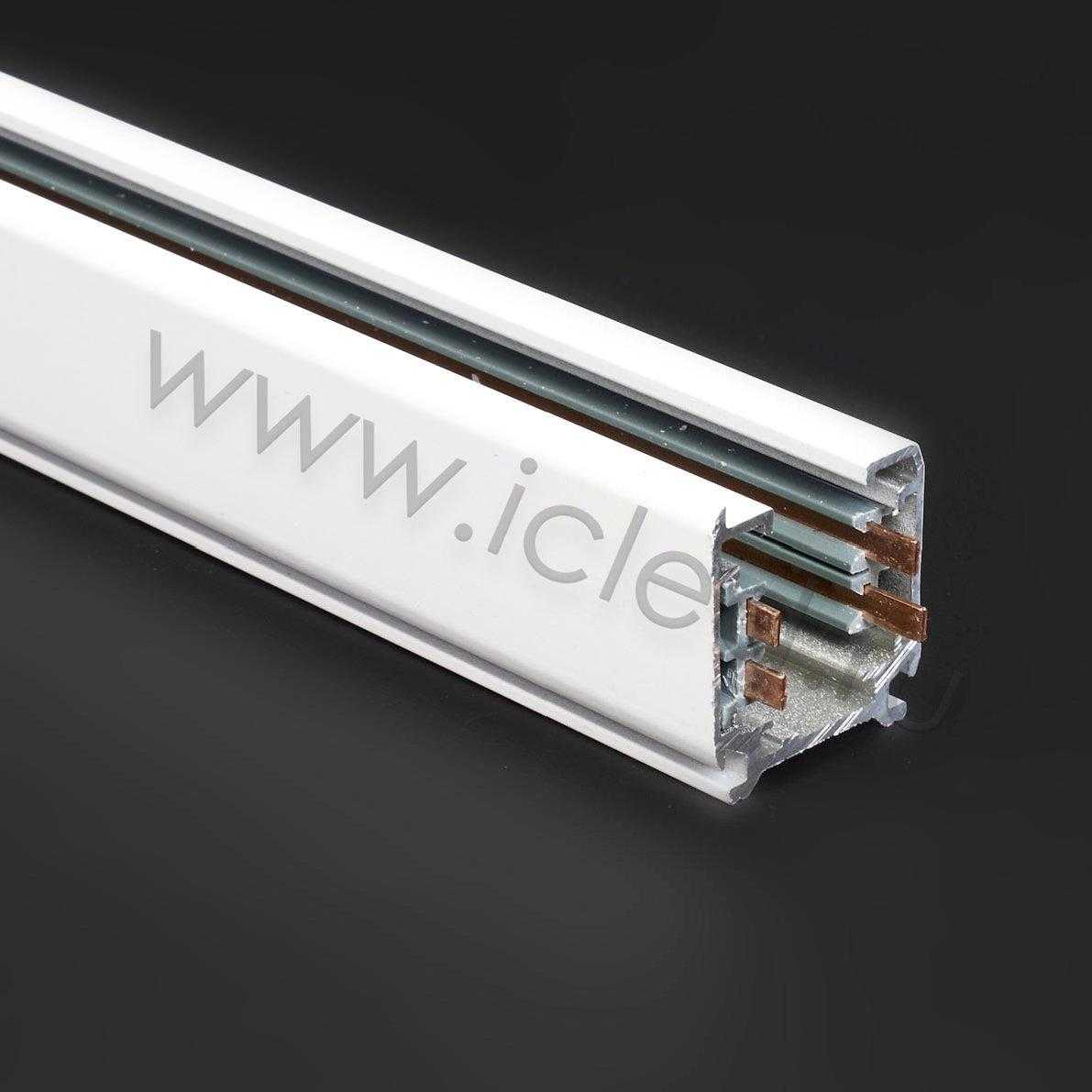 Трек для спотов ''трехфазный'', четыре провода. Корпус белый. Заземление трека и светильника. Возможность подключения до трех групп светильников на одном трековом шинопроводе. Размеры 1500х32,5х36мм. Вес 1200г.