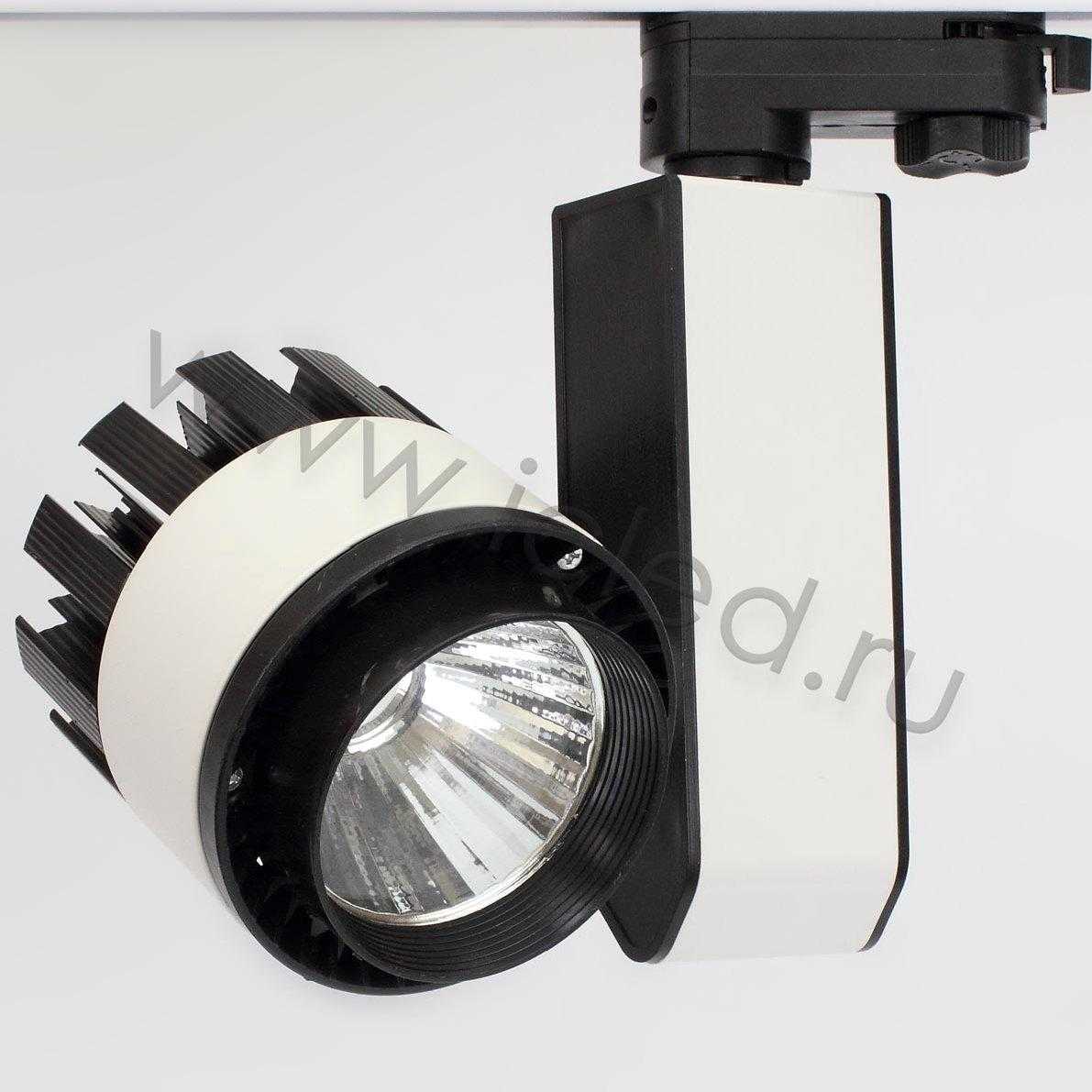 Трековый светильник. Белый с черными вставками корпус. Технология COB. Напряжение 85-265V, мощность 20W, цвет свечения теплый белый 3000K, световой поток 2000Lm. Угол свечения 30 градусов. Класс защиты IP40. Устанавливается на четырехпроводной шинопровод. Возможность подключения до трех групп светильников на одном трековом шинопроводе. Размеры 120x170x240мм. Вес 650гр.