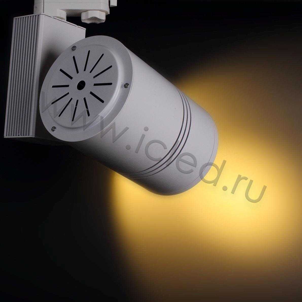 Трековый светильник. Белый корпус. Технология COB. Напряжение 85-265V, мощность 30W, цвет свечения теплый белый 3000K, световой поток 3000Lm. Угол свечения 30 градусов. Класс защиты IP40. Устанавливается на четырехпроводной шинопровод. Возможность подключения до трех групп светильников на одном трековом шинопроводе. Размеры 190x180x200мм. Вес 1100гр.