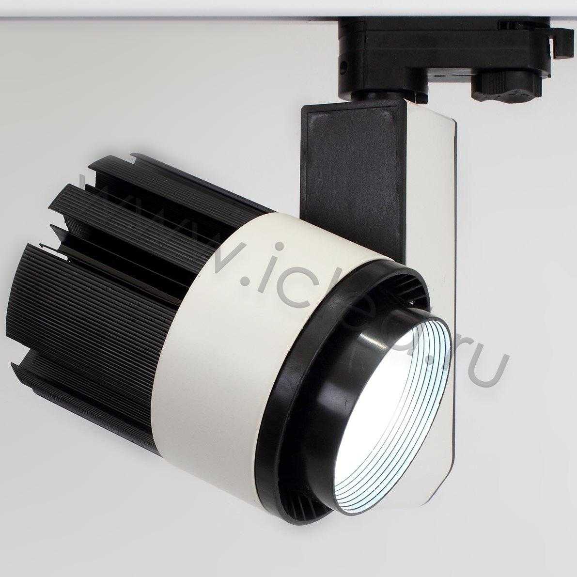 Трековый светильник. Белый с черными вставками корпус. Технология COB. Напряжение 85-265V, мощность 30W, цвет свечения белый 5000K, световой поток 3000Lm. Угол свечения 60 градусов. Класс защиты IP40. Устанавливается на четырехпроводной шинопровод. Возможность подключения до трех групп светильников на одном трековом шинопроводе. Размеры 140x170x240мм. Вес 750гр.