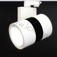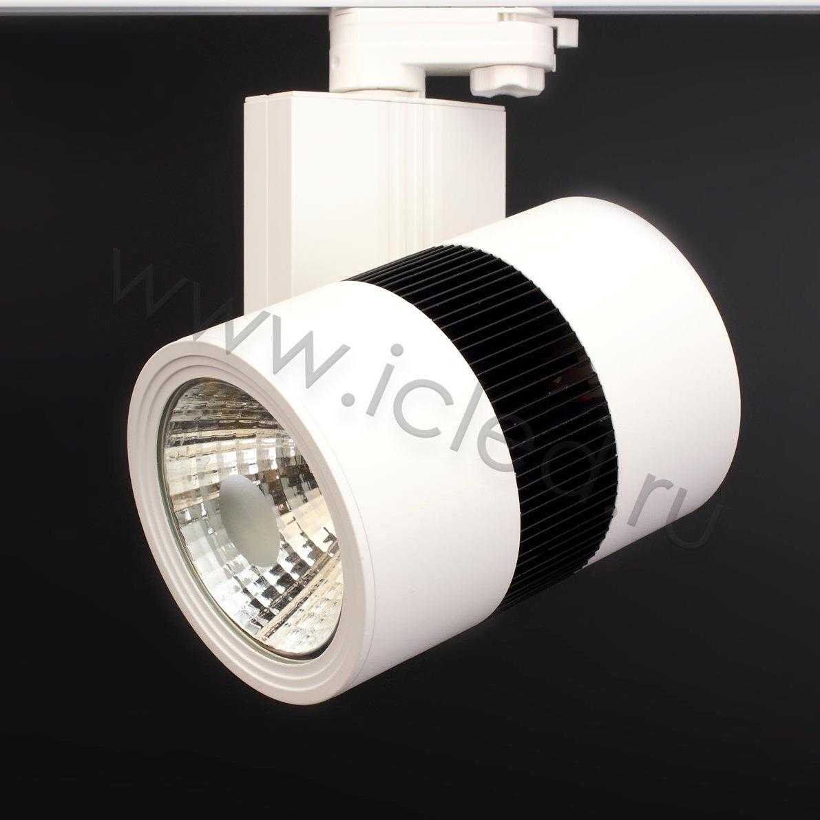 Трековый светильник. Белый корпус. Технология COB. Напряжение 85-265V, мощность 35W, цвет свечения белый 5000K, световой поток 3000Lm. Угол свечения 60 градусов. Класс защиты IP40. Устанавливается на четырехпроводной шинопровод. Возможность подключения до трех групп светильников на одном трековом шинопроводе. Размеры 190x170x240мм. Вес 1300гр.