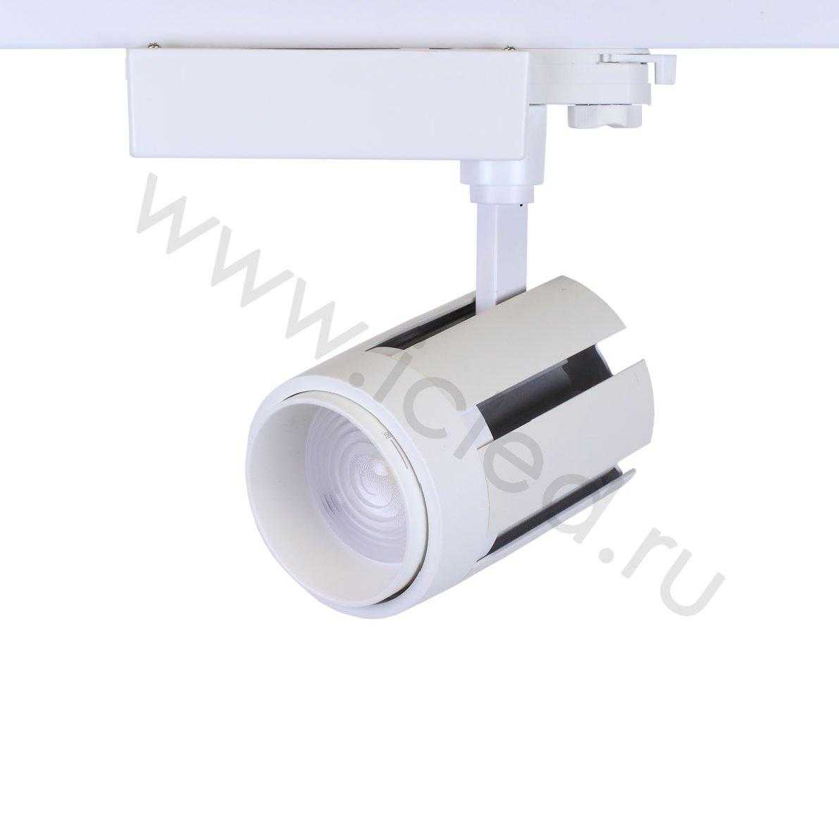 Трековый светильник. Белый корпус. Технология COB. Напряжение 85-265V, мощность 30W, цвет свечения теплый белый 3000-3500K, световой поток 2700Lm. Регулируемый угол свечения 15-60 градусов. Класс защиты IP40. Устанавливается на четырехпроводной шинопровод. Возможность подключения до трех групп светильников на одном трековом шинопроводе. Размеры 200x100x210мм. Вес 1100гр.
