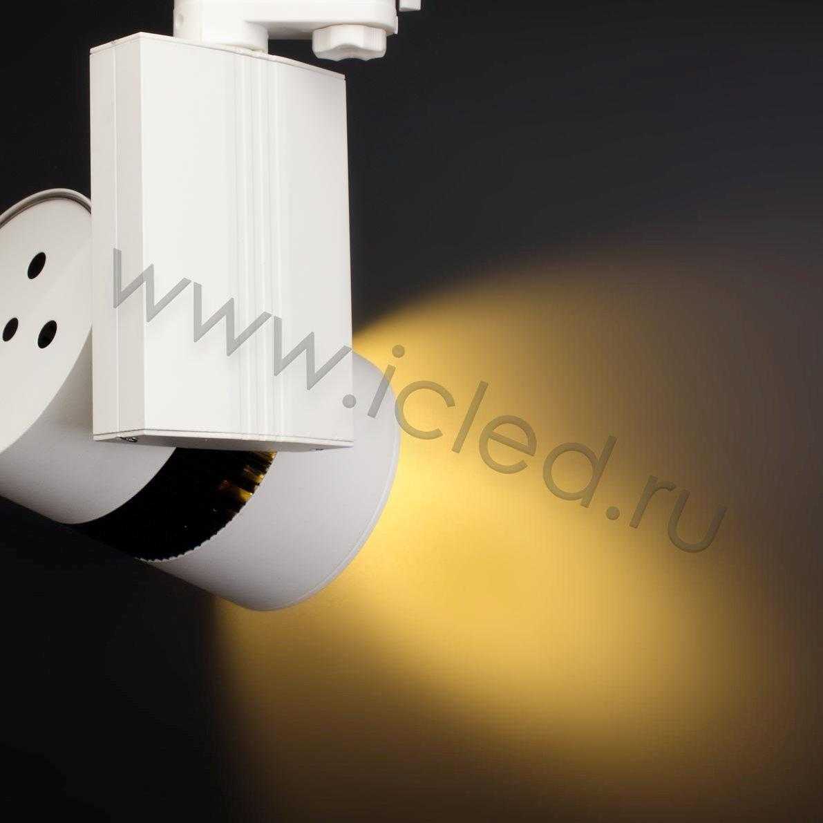 Трековый светильник. Белый корпус. Технология COB. Напряжение 85-265V, мощность 35W, цвет свечения теплый белый 3000K, световой поток 3000Lm. Угол свечения 60 градусов. Класс защиты IP40. Устанавливается на четырехпроводной шинопровод. Возможность подключения до трех групп светильников на одном трековом шинопроводе. Размеры 190x170x240мм. Вес 1300гр.