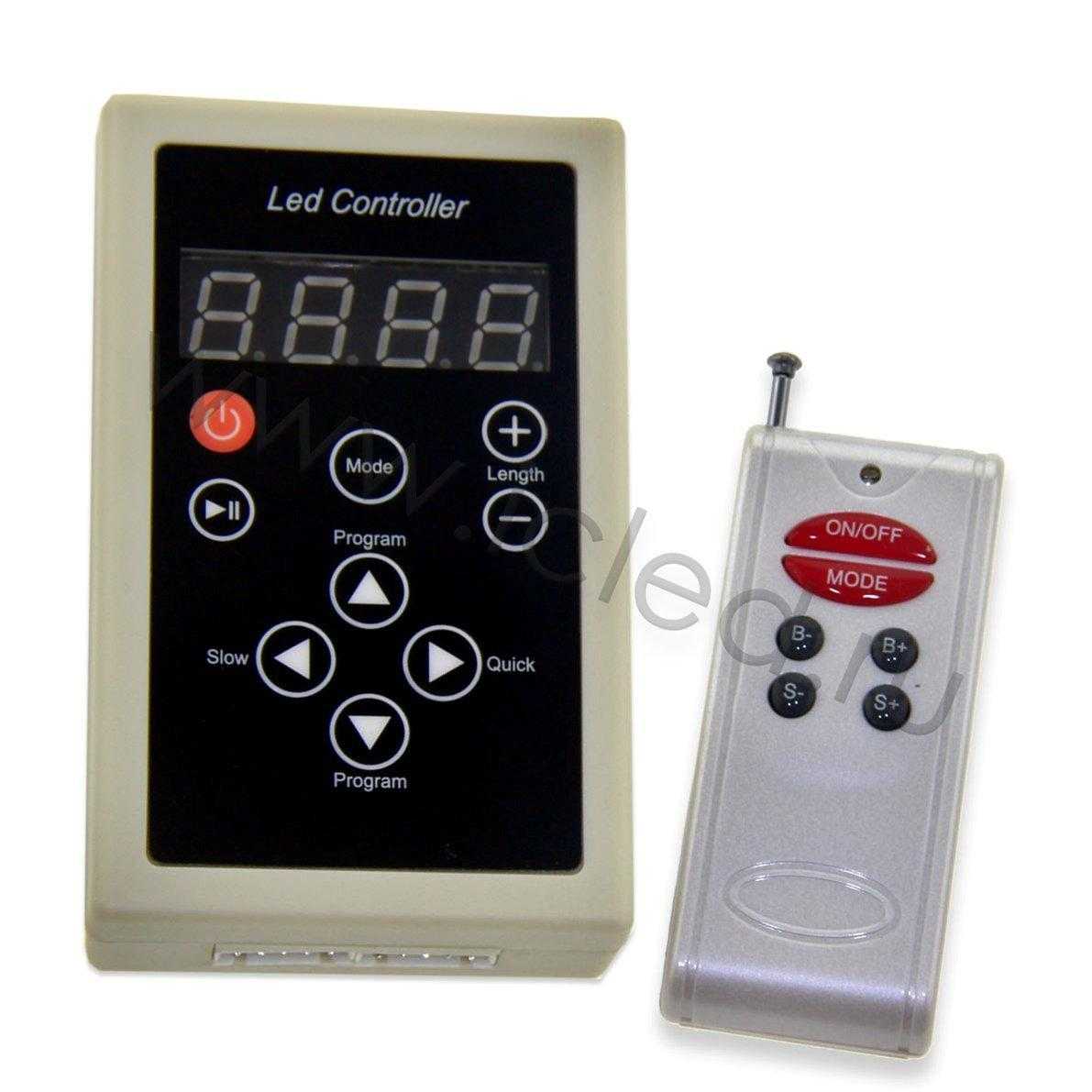 FLASH контроллер для управляемой светодиодной ленты с микросхемой 2811. В комплекте RF пульт. Напряжение питания 5-24V, 83 программы, размеры 94x59x25мм.