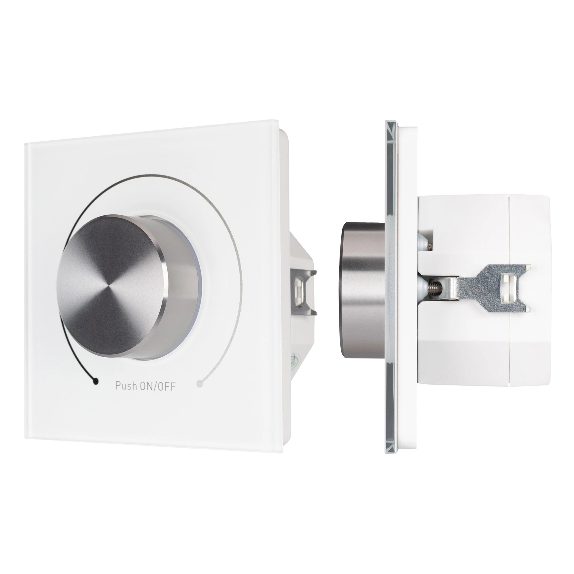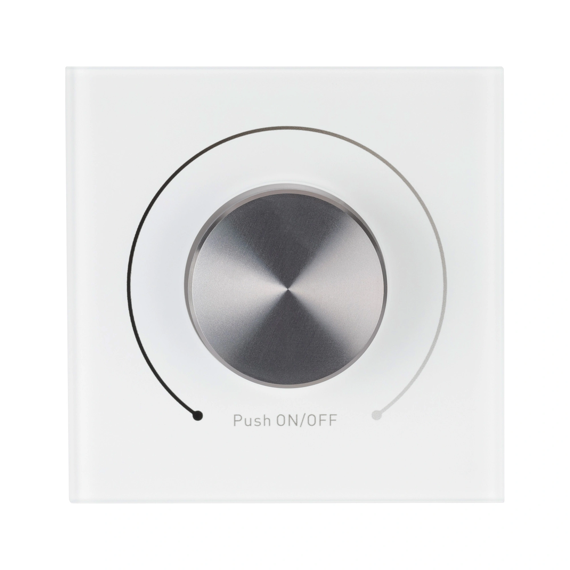 Встраиваемая стеклянная панель белого цвета с роторным вращателем (потенциометром), предназначенная для управления светодиодным или любым другим осветительным оборудованием, работающим в протоколе DALI. С помощью панели осуществляется регулировка яркости и включение/выключение света. Панель совместима с любыми исполнительными устройствами стандарта DALI. К устройству можно подключить одновременно до 32 диммеров DALI. Питание устройства осуществляется от шины DALI, либо от 230В. Установка адреса управления не требуется. Управление выполняется одновременно по всем адресам DALI (команды Broadcast). Габариты устройства составляют 86х86х45 мм, установка в стандартный подрозетник.