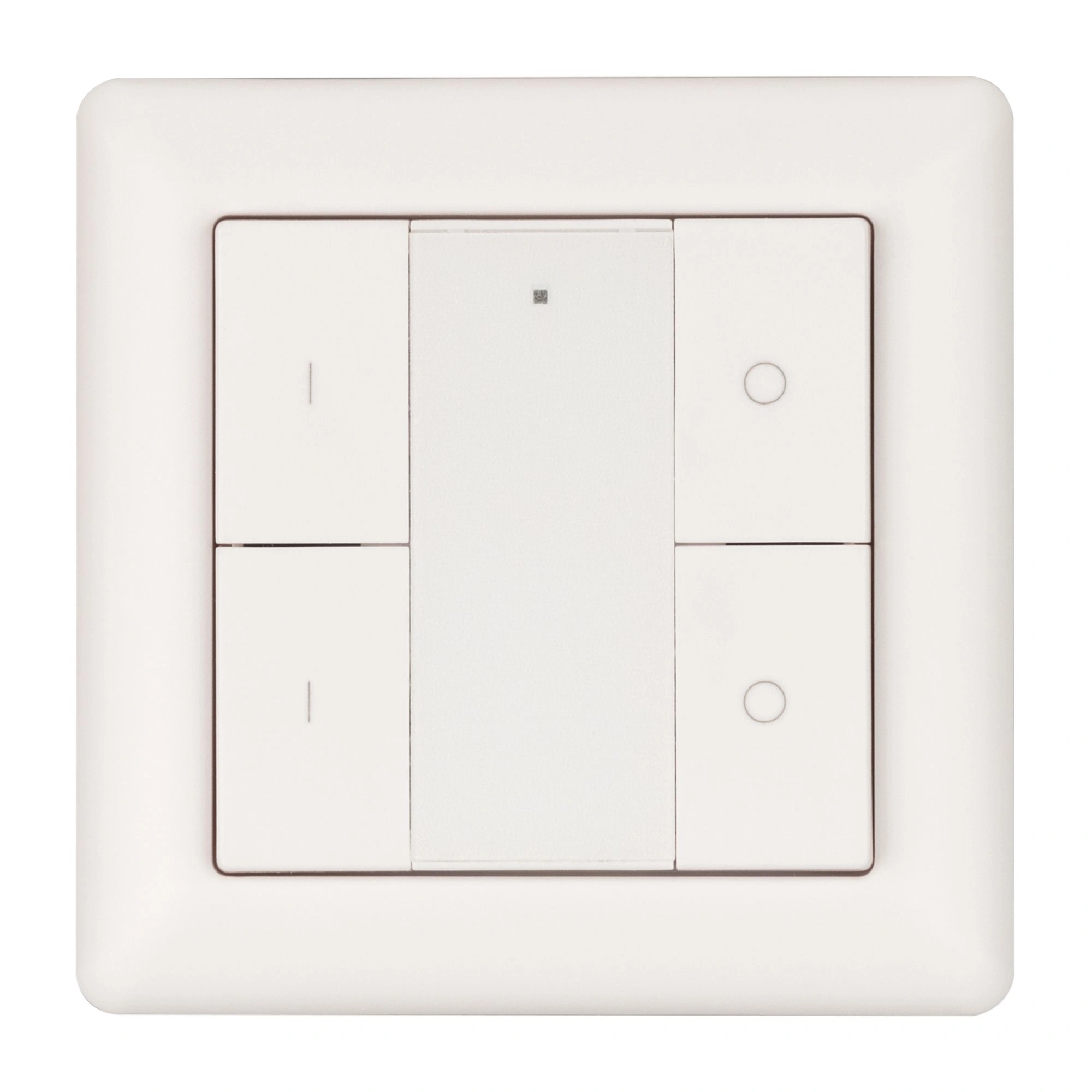 Встраиваемая пластиковая панель белого цвета с кнопочным управлением, предназначенная для управления одноцветными светодиодными лентами, светильниками и другими источниками света в системах управления светом DALI. Позволяет включать/выключать свет и менять его яркость в 2 группах либо в режиме широковещателя (Broadcast). Установка номера группы и сцен выполняется переключателями на задней стороне панели. Устройство совместимо с диммерами стандарта DALI. Передача команд от панели к диммерам выполняется по общей двухпроводной шине DALI. Удобное и точное управление при помощи отдельных механических кнопок для каждой функции. Питание от шины DALI. Габариты устройства составляют 71.2х71.2х13.6 мм. Панель совместима с декоративными рамками ведущих мировых производителей (GIRA, JUNG, BERKER, MERTEN).