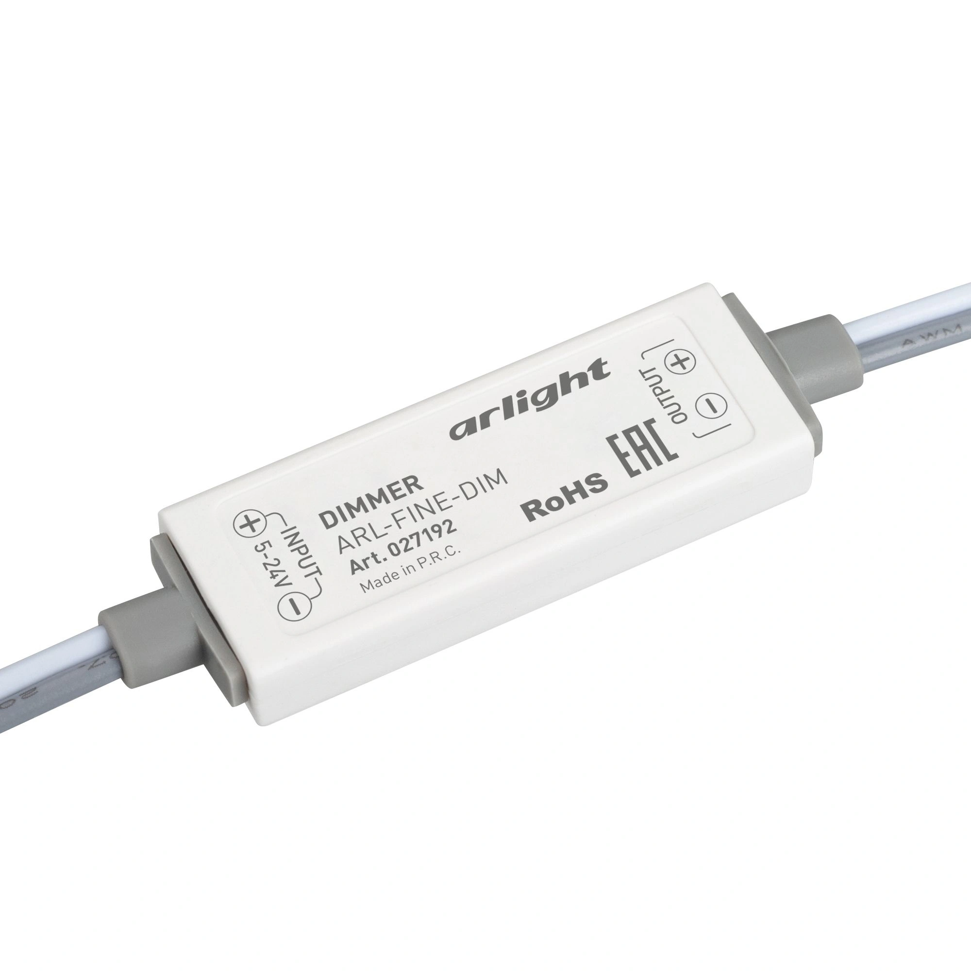 Комплект: 1-канальный миниатюрный диммер с радиопультом черного цвета с 11 кнопками, для управления одноцветной светодиодной лентой. Пульт имеет горячие кнопки предустановок яркости свечения. Этот комплект устройств позволит легко и удобно регулировать яркость освещения и осуществлять включение и выключение светодиодной ленты. Питание диммера имеет диапазон напряжений от 5В до 24В, максимальный ток 5А на 1 канал, максимальная мощность 25-120Вт (в зависимости от напряжения питания). Питание пульта осуществляется от батарейки CR2025. Габариты диммера составляют 50x10x6мм, габариты пульта составляют 35x85x7мм.