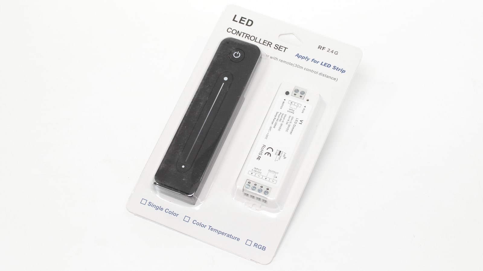 Контроллер DIM для светодиодной ленты с сенсорным радиопультом в комплекте. Дальность действия пульта 30 метров. 1 канал,напряжение питания 5-36V, максимальный выходной ток 8A на канал, мощность 5V - 40W, 12V - 96W, 24V - 192W, 36V - 388W, рабочая частота 2,4GHz. Работает со всем оборудованием серии ICLED PRO. Рабочая температура -30 - +55 градусов. Размеры контроллера 105x33x18мм. Размеры упаковки 200x125x20мм. Вес 130г.