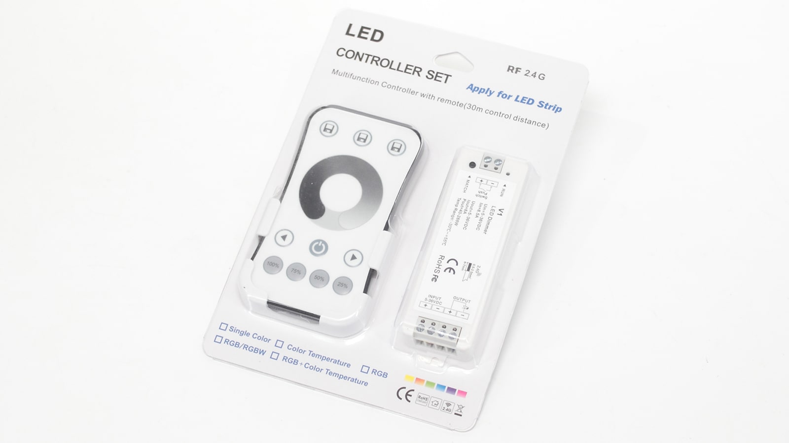 Контроллер DIM для светодиодной ленты с сенсорным радиопультом в комплекте. Дальность действия пульта 30 метров. 1 канал,напряжение питания 5-36V, максимальный выходной ток 8A на канал, мощность 5V - 40W, 12V - 96W, 24V - 192W, 36V - 388W, рабочая частота 2,4GHz. Работает со всем оборудованием серии ICLED PRO. Рабочая температура -30 - +55 градусов. Размеры контроллера 105x33x18мм. Размеры упаковки 200x135x25мм. Вес 120г.