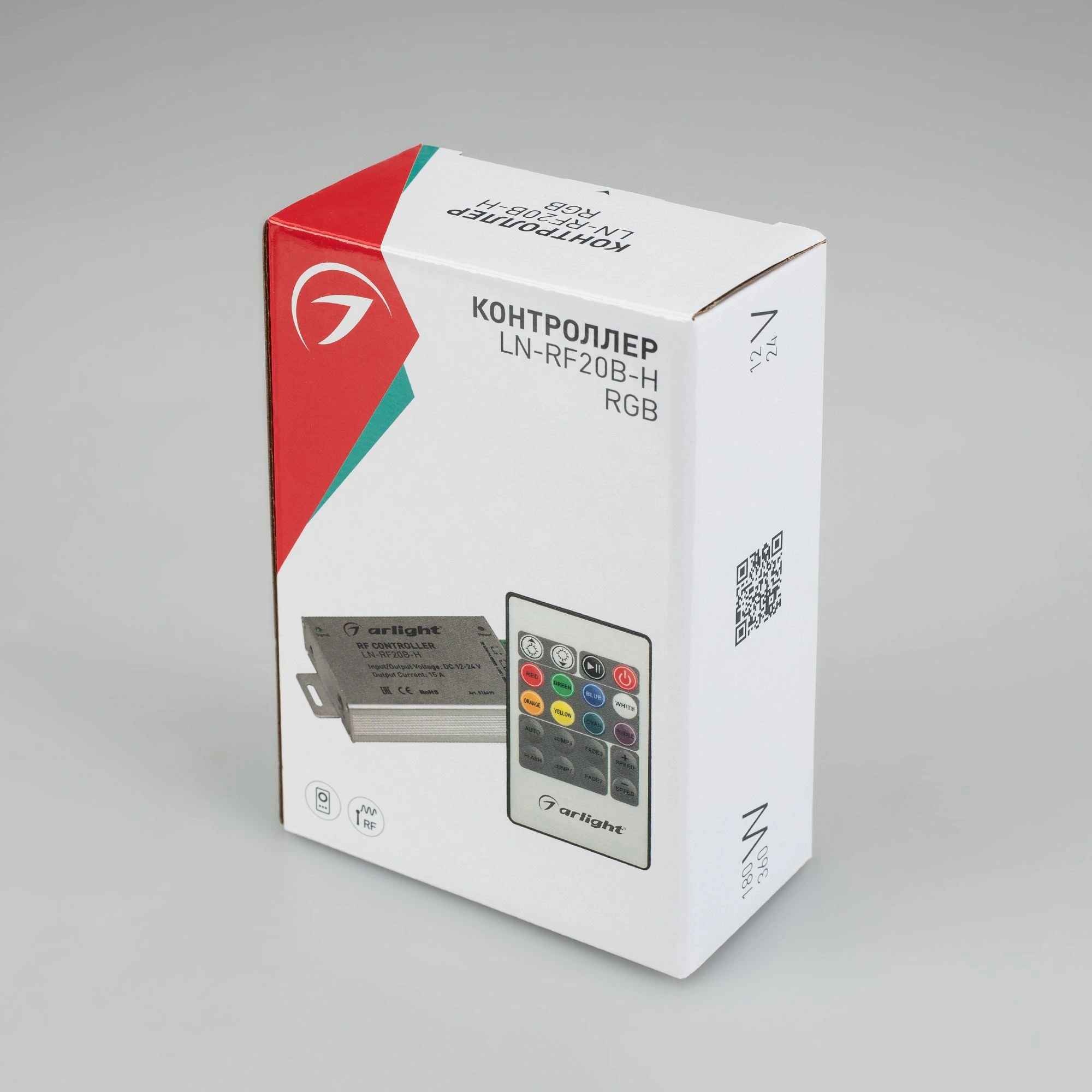 RGB-контроллер с RF (радио) пультом 20 кнопок. 21 программа, скорость, яркость, прямой выбор цвета.12-24VDC, 5A/канал, 180/360W. Размер 128х64х24мм.