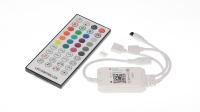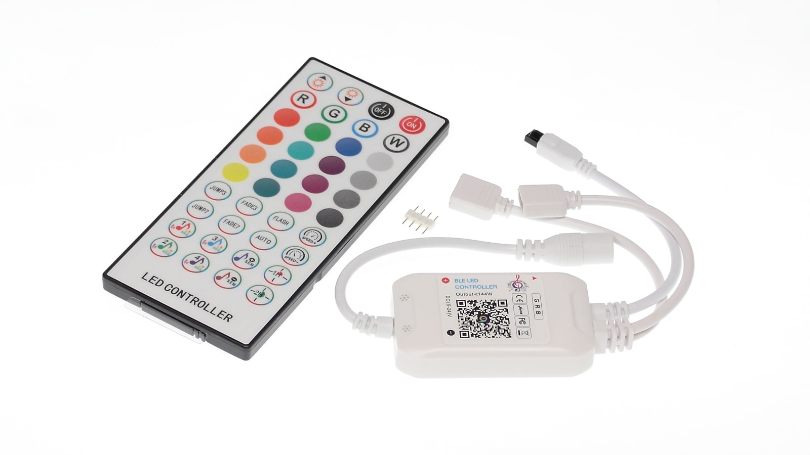 Контроллер RGB для светодиодной ленты. ИК пульт 40 кнопок+ управление по Bluetooth. Напряжение питания 5-24V, выходной ток max 3x2A, мощность max 144W.Размер контроллера 85x35x14мм. Размер упаковки170х80х20мм. Вес 65г.