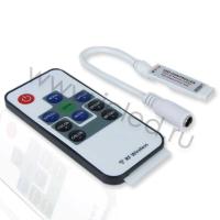 Миниатюрный RGB контроллер в термоусадочной оболочке для светодиодных лент. Пульт RF в комплекте(10 кнопок). Напряжение питания 5-24V, выходной ток до 6A (3х2A), мощность 30-144W (5V-30W, 12V-72W, 24V-144W). Размеры 42x12x3мм. Вес 30г.