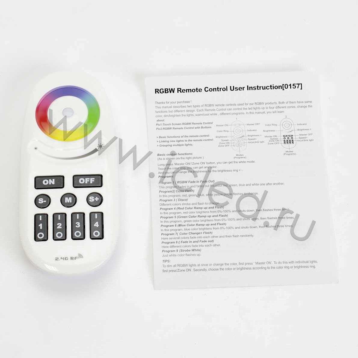 Пульт управления сенсорный для контроллера арт.30821 (нижние клавиши- 4 зоны) или контроллеров арт.54570 и 30820 (нижние клавиши- диммирование RGBW). Выбор цвета, регулировка яркости, скорости, стандартные динамические программы смены цвета. Размеры 120х53х20. Вес 55г.