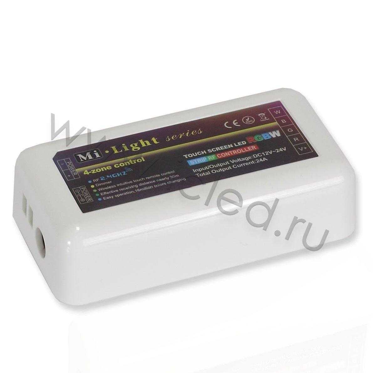 Контроллер Mi-Light RGBW для светодиодной ленты. Стабильный прием сигнала на удалении до 30 метров. 4 канала. Напряжение питания 12-24V, выходной ток до 6A на канал, мощность 288W (12V); 576W (24V), рабочая частота 2,4GHz.