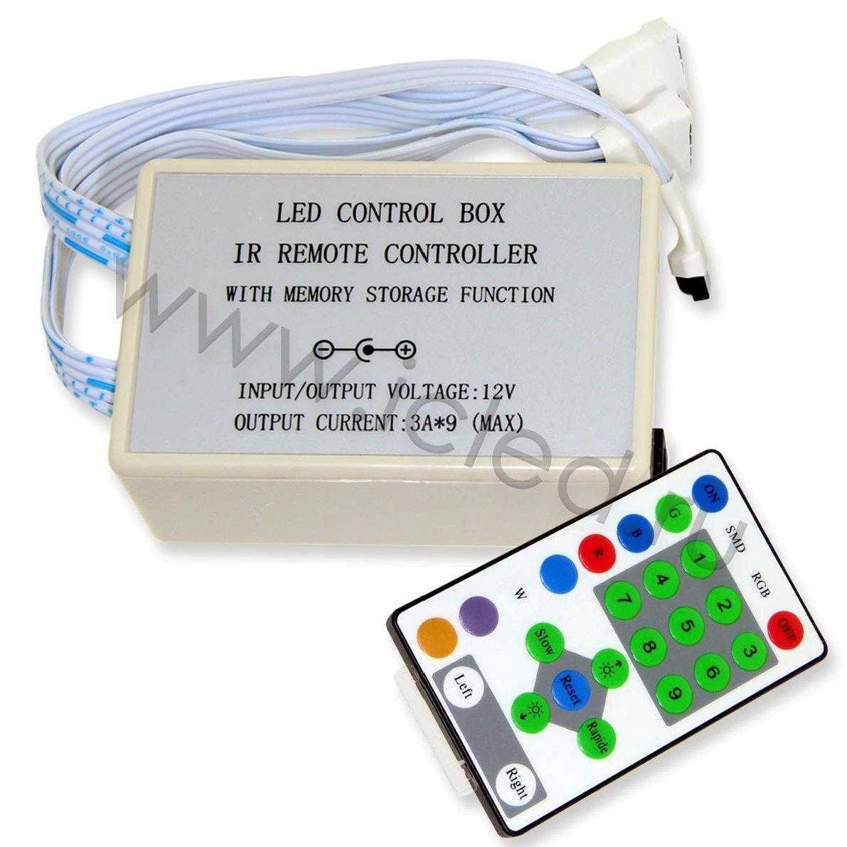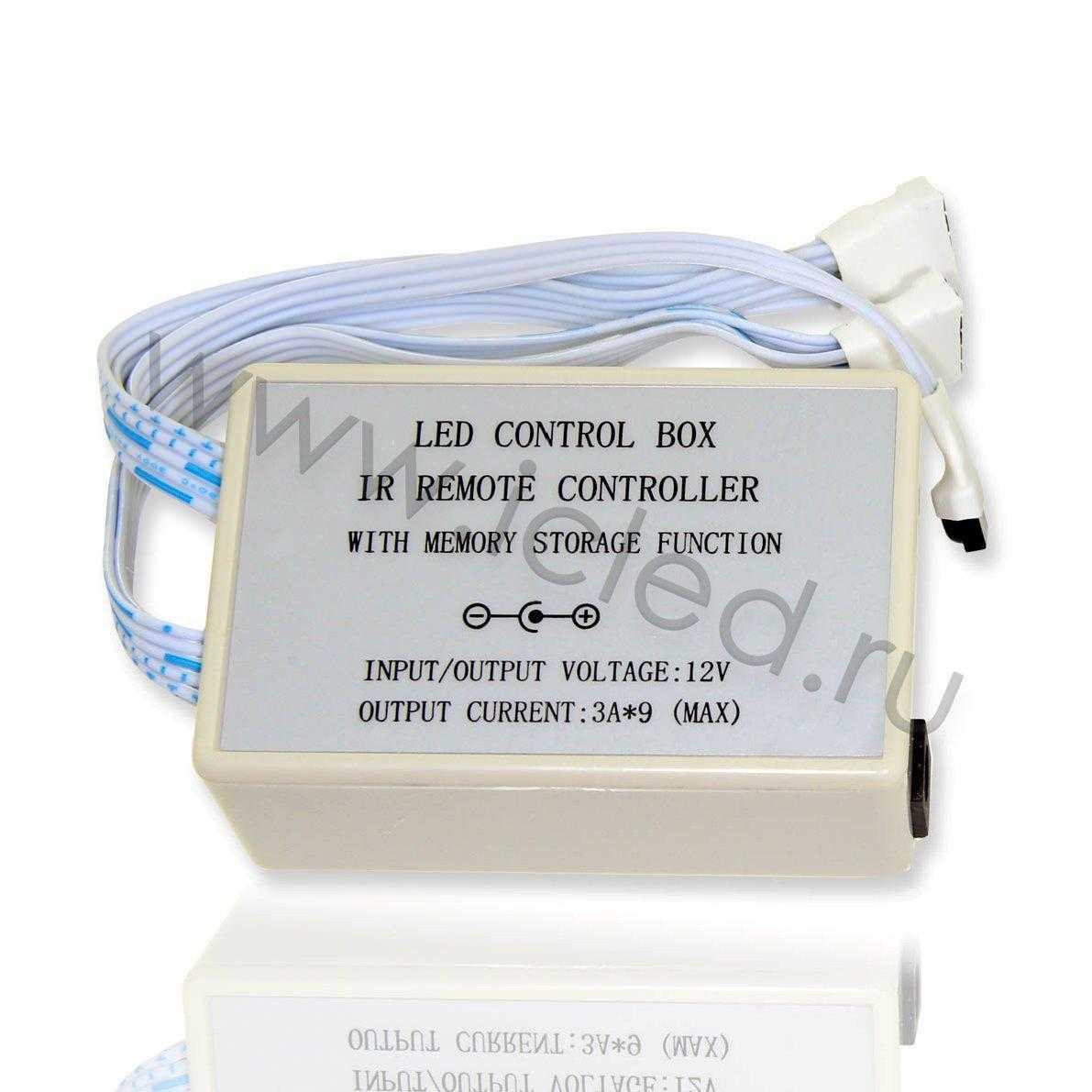 Контроллер для 6-ти канальных светодиодных лент. Инфракрасный пульт в комплекте (24 кнопки). Напряжение питания 12V, выходной ток до 3A на канал, мощность 324W. Рассчитан на подключение до 20 метров ленты.