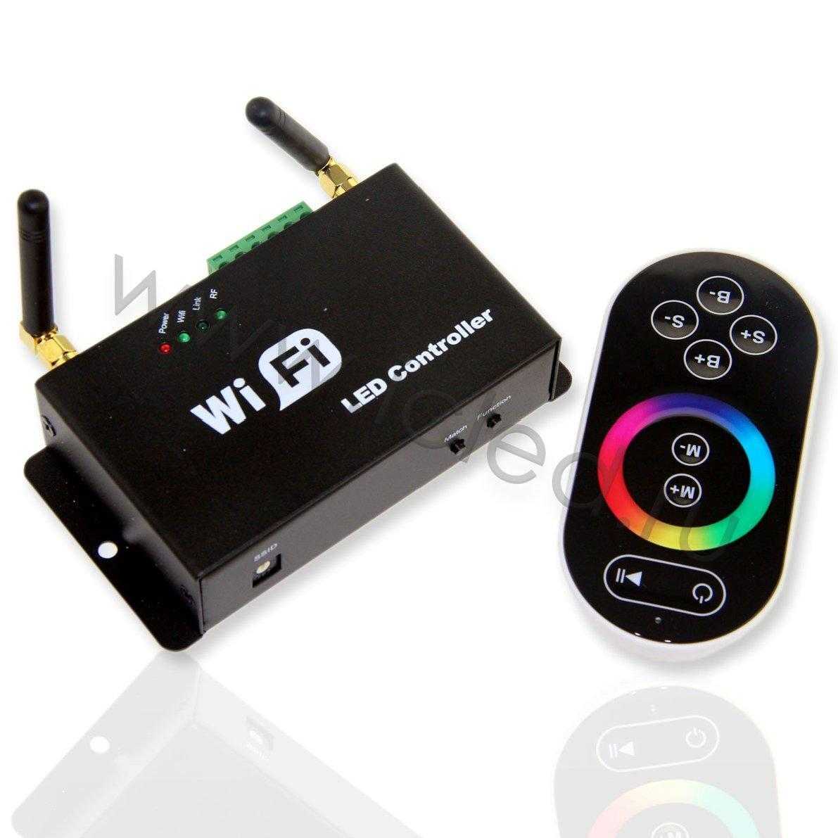 Контроллер RGB для светодиодной ленты. С сенсорным черным RF пультом в комплекте. Возможно управление через телефон по WI-FI. Напряжение питания 12-24V, выходной ток до 12A(4A на канал), мощность 144-288W. Размеры 107х65х30мм.