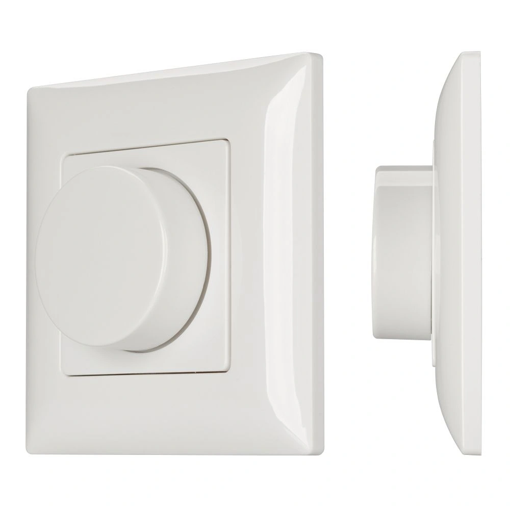 Накладная роторная панель белого цвета, изготовленная из пластика. Предназначена для управления одноцветными источниками света (ШИМ) с помощью роторного вращателя. Основные выполняемые функции: включение и выключение света, регулировка яркости. Удобное и точное управление с помощью стильного вращающегося регулятора. Изделие применяется в качестве однозонного пульта дистанционного управления диммерами и контроллерами серии SMART. К одной панели возможно привязать неограниченное количество диммеров и контроллеров. Устройство совместимо с диммерами и контроллерами серии SMART, поддерживающими управление по радиоканалу 2.4G. Питание 3В осуществляется от батарейки CR2032. Габариты панели 86х86х23 мм, корпус выполнен из пластика, лицевая часть - из пластика. Устройство устанавливается на любую поверхность, к которой возможно прикрутить монтажную базу панели.