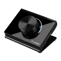 Настольная роторная панель чёрного цвета, изготовленная из пластика, защищенного от появления мелких царапин. Предназначена для управления мультибелыми (MIX) источниками света (ШИМ) с помощью роторного вращателя. Основные выполняемые функции: включение и выключение света, регулировка яркости. Удобное и точное управление с помощью стильного вращающегося регулятора. Изделие применяется в качестве однозонного пульта дистанционного управления диммерами и контроллерами серии SMART. К одной панели возможно привязать неограниченное количество диммеров и контроллеров. Устройство совместимо с диммерами и контроллерами серии SMART, поддерживающими управление по радиоканалу 2.4G. Питание 3В осуществляется от батарейки CR2032. Габариты панели 91х72х52 мм, корпус выполнен из пластика, лицевая часть - из пластика.