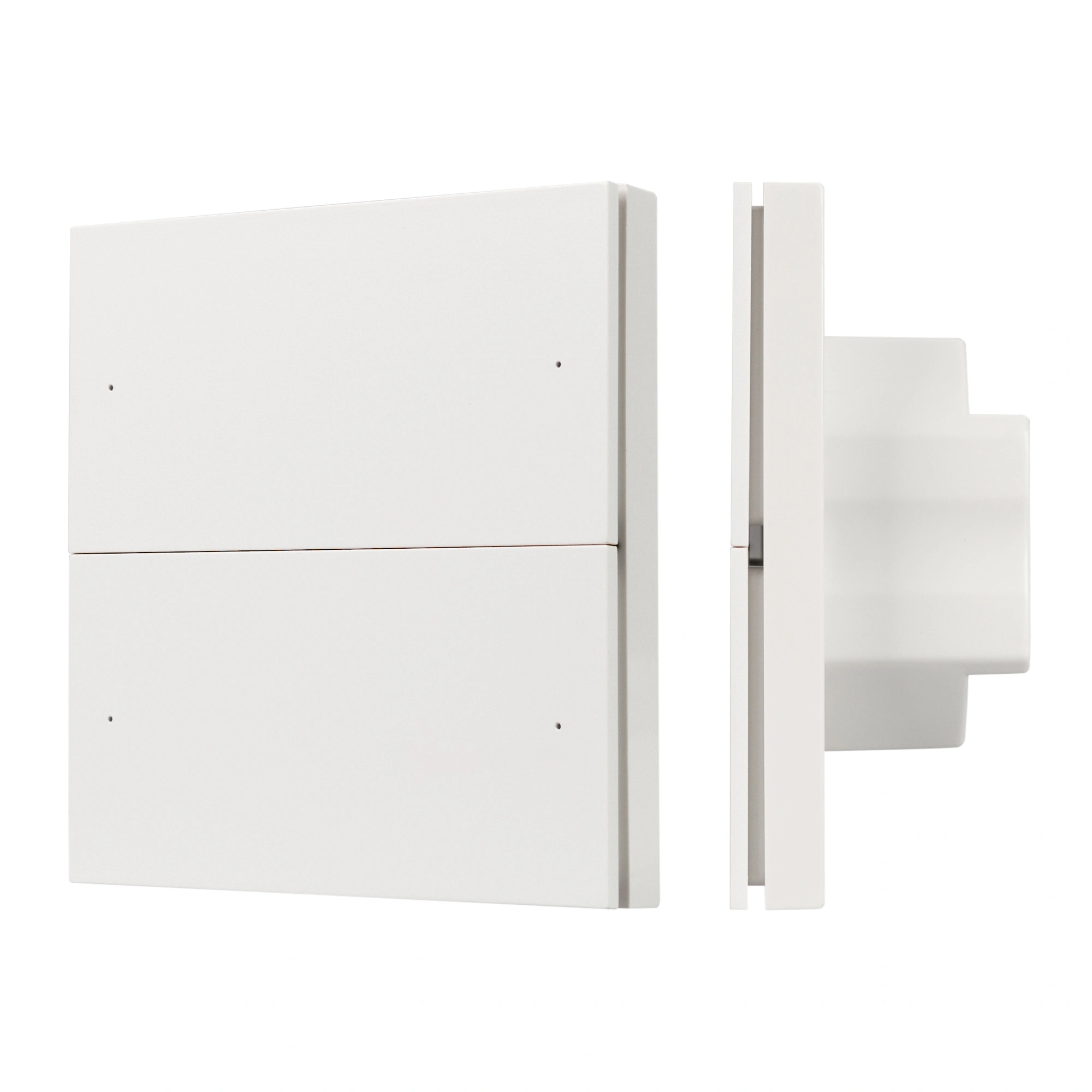 Встраиваемая пластиковая кнопочная панель, предназначенная для управления светодиодными источниками света по радиоканалу 2.4G или цифровой шине DMX512. Изделие позволяет осуществлять основные функции управления светом: включение/выключение, регулировка яркости, активация сцен. Панель совместима с диммерами и контроллерами SMART по радиоканалу 2.4G (количество привязываемых диммеров и контроллеров не ограничено) и может управлять DMX-диммерами по проводной шине DMX512. Выходной сигнал DMX соответствует стандартному протоколу DMX512 и совместим с оборудованием DMX любого производителя. Панель белого цвета имеет 4 настраиваемые кнопки, функции которых задаются DIP-переключателями. Питание сети 230В. Габариты изделия 86х86х35.5мм, встраивается в стандартную монтажную коробку.