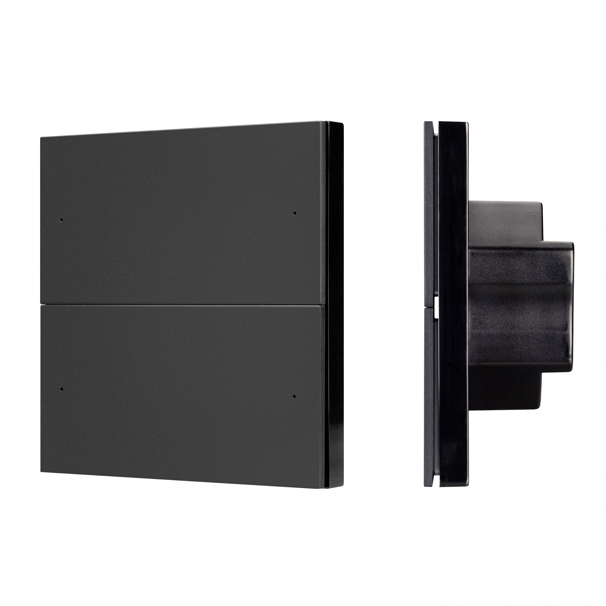 Встраиваемая пластиковая кнопочная панель, предназначенная для управления светодиодными источниками света по радиоканалу 2.4G или цифровой шине DMX512. Изделие позволяет осуществлять основные функции управления светом: включение/выключение, регулировка яркости, активация сцен. Панель совместима с диммерами и контроллерами SMART по радиоканалу 2.4G (количество привязываемых диммеров и контроллеров не ограничено) и может управлять DMX-диммерами по проводной шине DMX512. Выходной сигнал DMX соответствует стандартному протоколу DMX512 и совместим с оборудованием DMX любого производителя. Панель чёрного цвета имеет 4 настраиваемые кнопки, функции которых задаются DIP-переключателями. Питание сети 230В. Габариты изделия 86х86х35.5мм, встраивается в стандартную монтажную коробку.