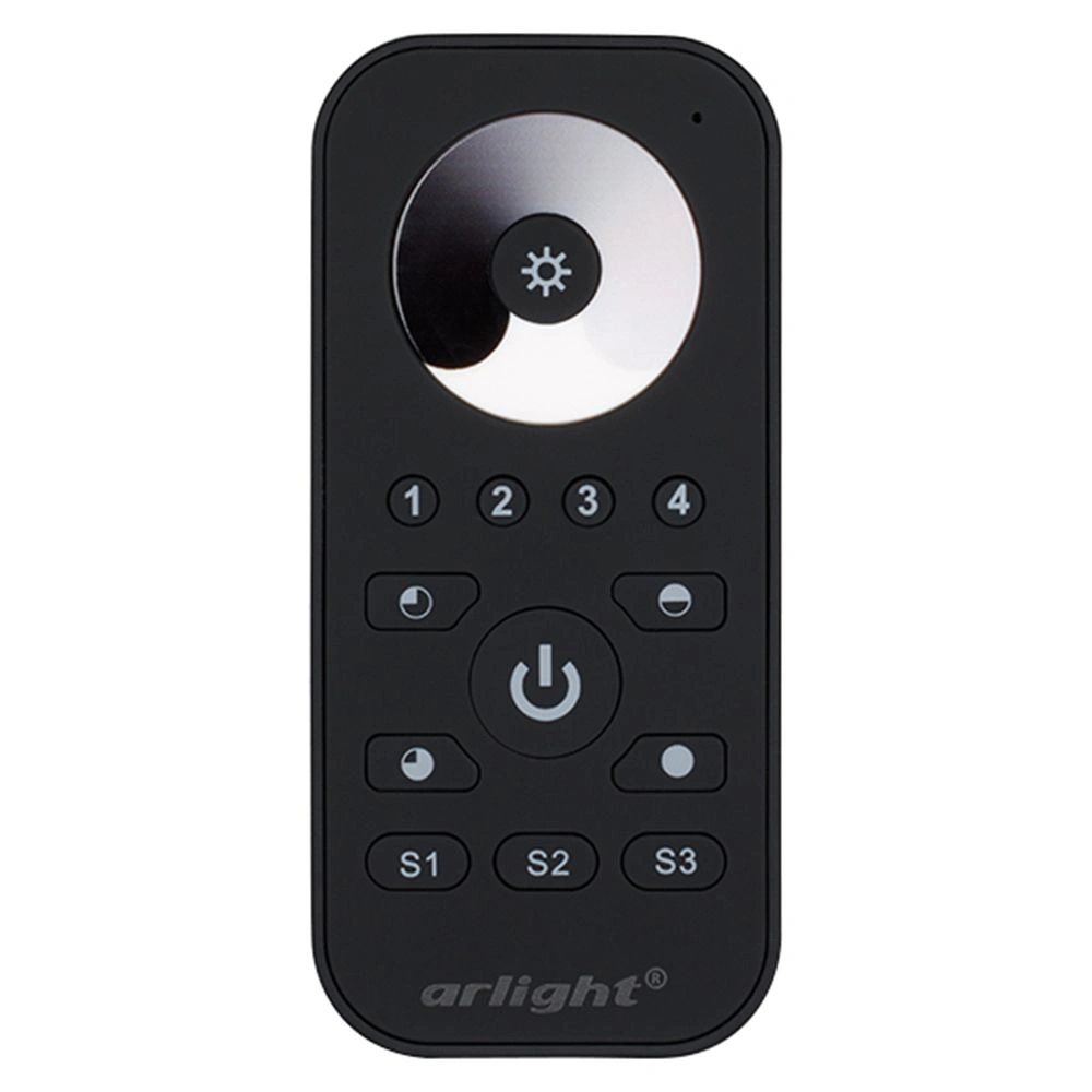 Кнопочный радиопульт черного цвета с сенсорным кольцом и кнопками для управления диммерами серий SR, Excellent. Позволяет осуществлять включение/выключение источников света, реуглировку их яркости в 4-х различных зонах. Возможность памяти 3-х пользовательских настроек. Настенный держатель в комплекте. Питание пульта осуществляется от 3-х батареек ААА. Габариты составляют 119х54х10мм, пластиковый корпус чёрного цвета.