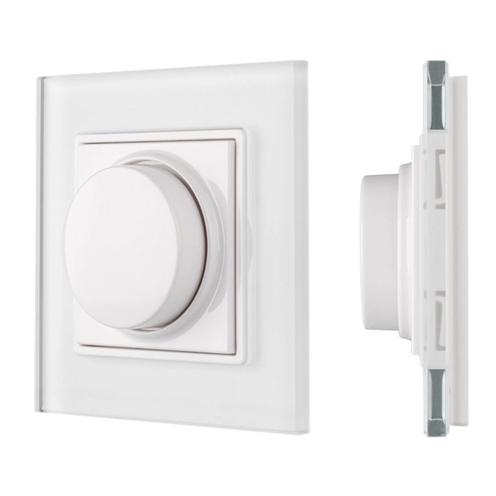 Накладная роторная панель белого цвета для управления диммерами серий SR, Excellent. Позволяет осуществлять включение/выключение источников света, реуглировку их яркости. Питание панели осуществляется от 3В батарейки CR2430. Габариты составляют 86x86x27 мм, корпус белого цвета, лицевая часть рамки панели - стекло. Изделие совместимо с рамками мировых производителей, в том числе, GIRA S-55, E2, Event, Esprit.