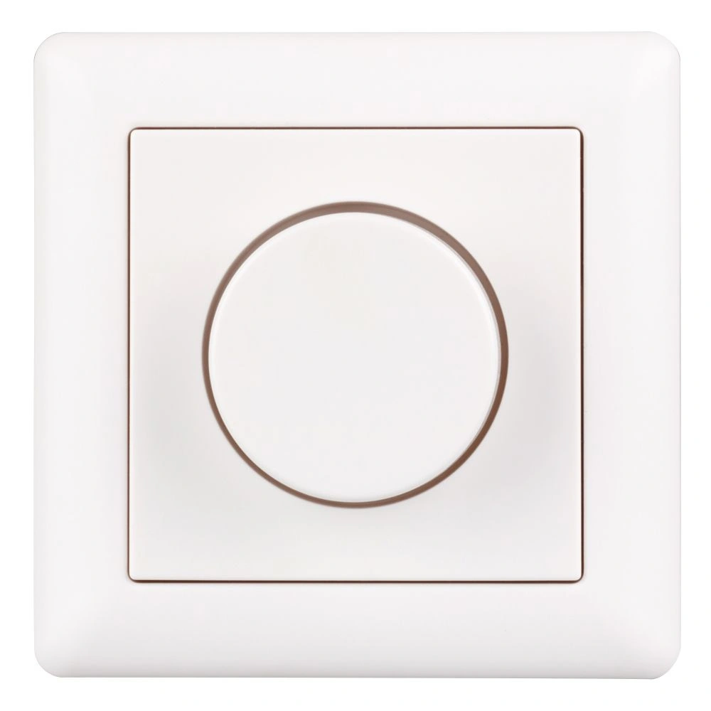 Встраиваемая роторная панель белого цвета для управления диммерами серий SR, Excellent. Позволяет осуществлять включение/выключение источников света, реуглировку их яркости. Питание панели осуществляется от 230В. Габариты составляют 72x72x32 мм, корпус белого цвета, лицевая часть рамки панели - пластик.