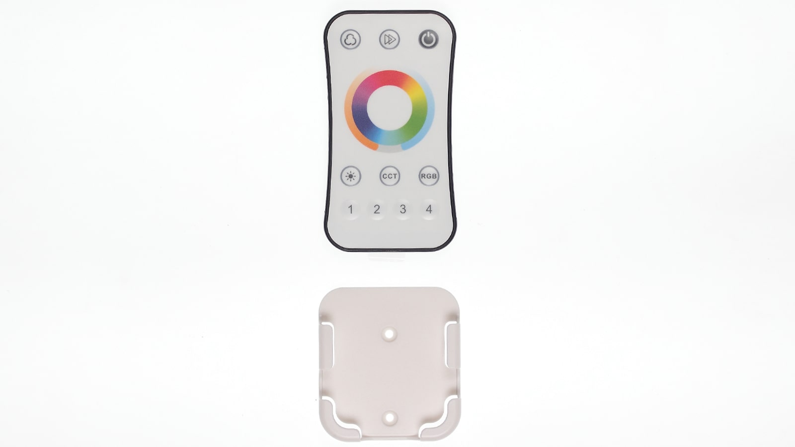 Кнопочный пульт с сенсорным кольцом RGB+CCT. Для управления многоцветной лентой RGBW/RGB и выбора цветовой температуры белого.. Поддержка до 4 зон управления. Управление по RF2,4GHz. Держатель пульта в комплекте. Элемемент питания 3VDC)CR2032). Дальность действия управления по радиосигналу до 30м (прямая видимость без препятствий). Рабочая температура от -30 до +55 градусов. Работает со всем оборудованием серии ICLED PRO. Степень защиты IP20. Размер пульта 107x58,5x9мм. Гарантия 5 лет. Размер упаковки 115x65x20мм. Вес 60г.