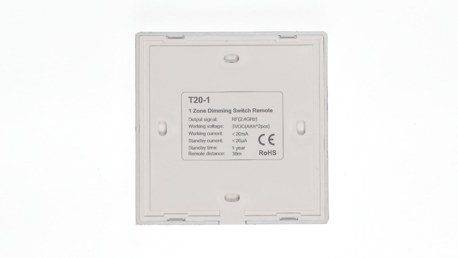 Накладная сенсорная панель DIM белого цвета. Для регулировки уровня яркости одноцветной ленты.. Стеклянная лицевая панель. Поддержка 1 зоны управления. Питание 3V (AAAx2), выходной сигнал RF 2.4GHz.Работает со всем оборудованием серии ICLED PRO. Дальность действия управления по радиосигналу до 30м (прямая видимость без препятствий). Рабочая температура от -30 до +55 градусов. Степень защиты IP20. Размер панели 86x86x20мм. Гарантия 5 лет. Размер упаковки 100x90x29мм. Вес 200г.