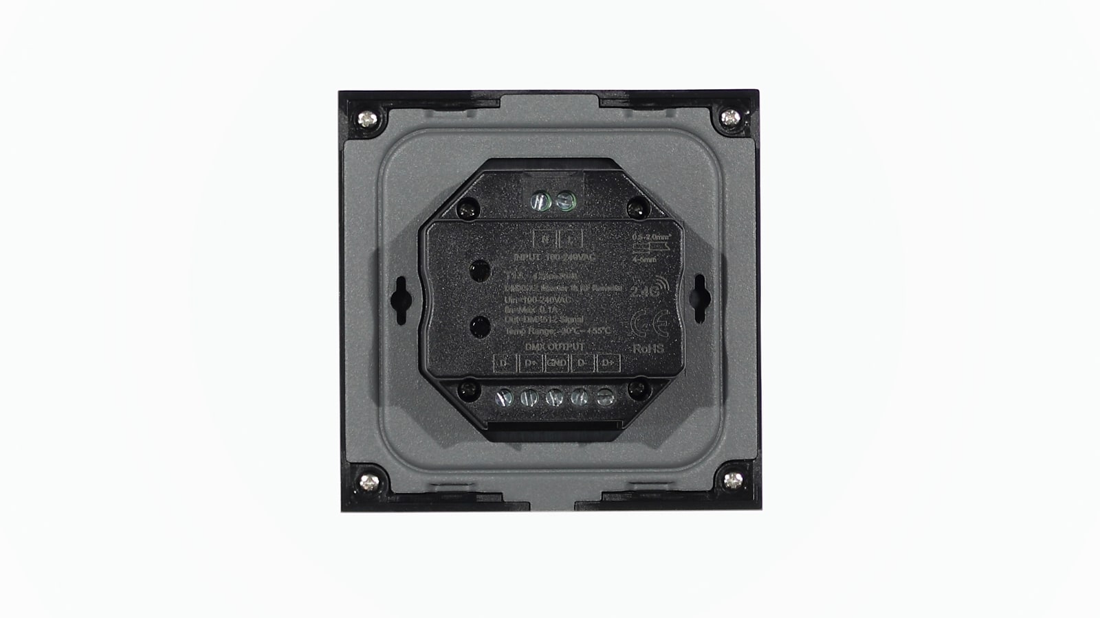 Встраиваемая сенсорная панель RGB черного цвета. Для управления многоцветной лентой с возможностью регулировки яркости. Стеклянная лицевая панель. Поддержка до 4-х зон управления. Входное напряжение 100-240V, выходной сигнал DMX512, RF 2.4GHz.Работает со всем оборудованием серии ICLED PRO. Дальность действия управления по радиосигналу до 30м (прямая видимость без препятствий). 256 уровней регулировки яркости от 0 до 100%. Установка в стандартный подрозетник. Рабочая температура от -30 до +55 градусов. Степень защиты IP33. Размер панели 86x86x34мм. Гарантия 5 лет. Размер упаковки 110x110x50мм. Вес 230г.