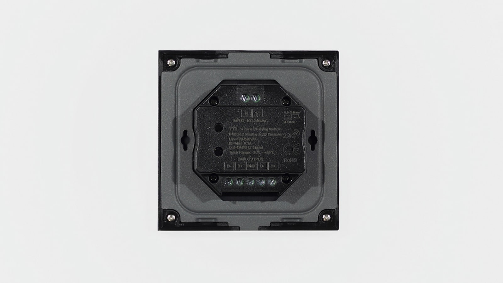 Встраиваемая сенсорная панель черного цвета. Для регулировки уровня яркости одноцветной ленты. Стеклянная лицевая панель. Поддержка до 4-х зон управления. Входное напряжение 100-240V, выходной сигнал DMX512, RF 2.4GHz. Работает со всем оборудованием серии ICLED PRO. Дальность действия управления по радиосигналу до 30м (прямая видимость без препятствий). 256 уровней регулировки яркости от 0 до 100%. Установка в стандартный подрозетник. Рабочая температура от -30 до +55 градусов. Степень защиты IP33. Размер панели 86x86x34мм. Гарантия 5 лет. Размер упаковки 110x110x50мм. Вес 230г.